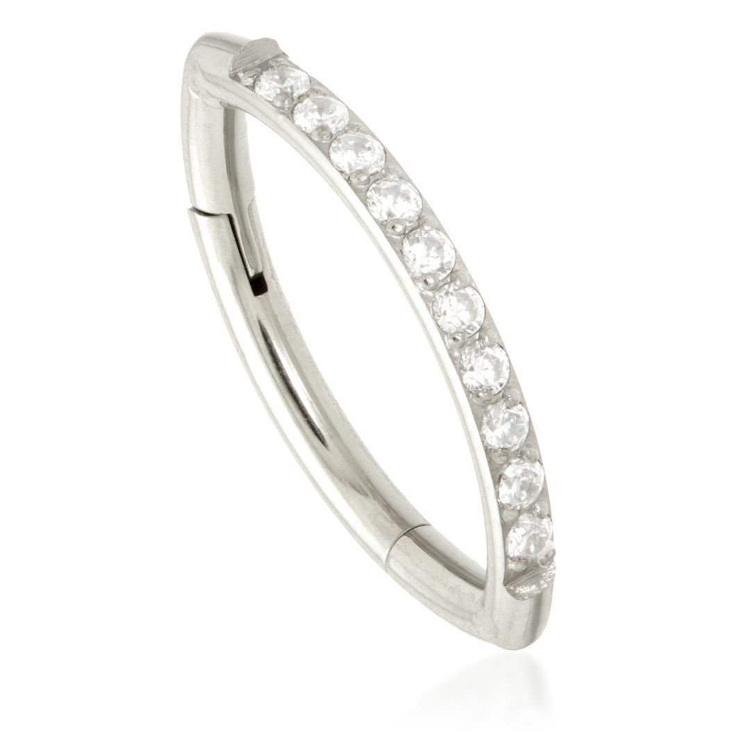 Ti Rook Side Pave Gem Hinged Ring Gauge: 1.2mm Sizes: 8/10mm Gem Colour: CR CZ Gem Stones Medical Grade Titanium 6Al-4VEli ASTM:F-136