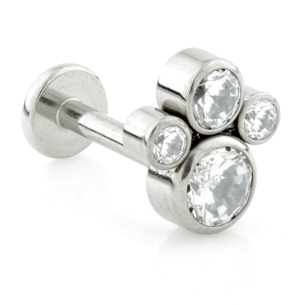 Titanium Threadless Labret with Gem Quad Attachment Gauge: 1.2mm Size: 8mm Gem Colour: CR Fits all POPs Medical Grade Titanium 6Al-4VEli ASTM:F-136