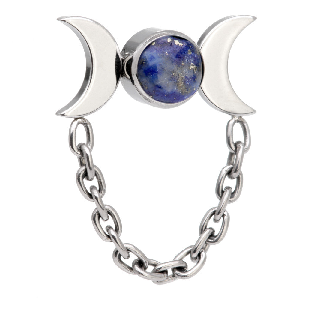 Ti Threadless Lapis Bezel with Double Moon Crescent Attachment Attachment Size: 3mm x 9.7mm Stone Colour: Lapis Medical Grade Titanium 6Al-4VEli ASTM:F-136