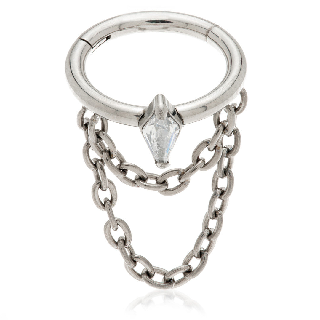 Ti Couture Hinge Ring with Kite Gem and Chains Gauge: 1.2mm Diameter: 8mm / 10mm Gem Colour: Crystal Medical Grade Titanium 6Al-4VEli ASTM:F-136