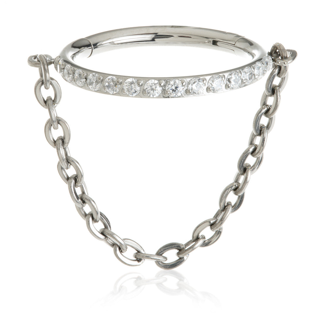 Ti Couture Pave Gem Hinge Ring with Chain Gauge: 1.2mm Diameter: 8mm / 10mm Gem Colour: Crystal Medical Grade Titanium 6Al-4VEli ASTM:F-136