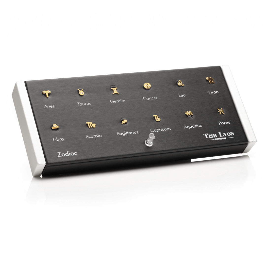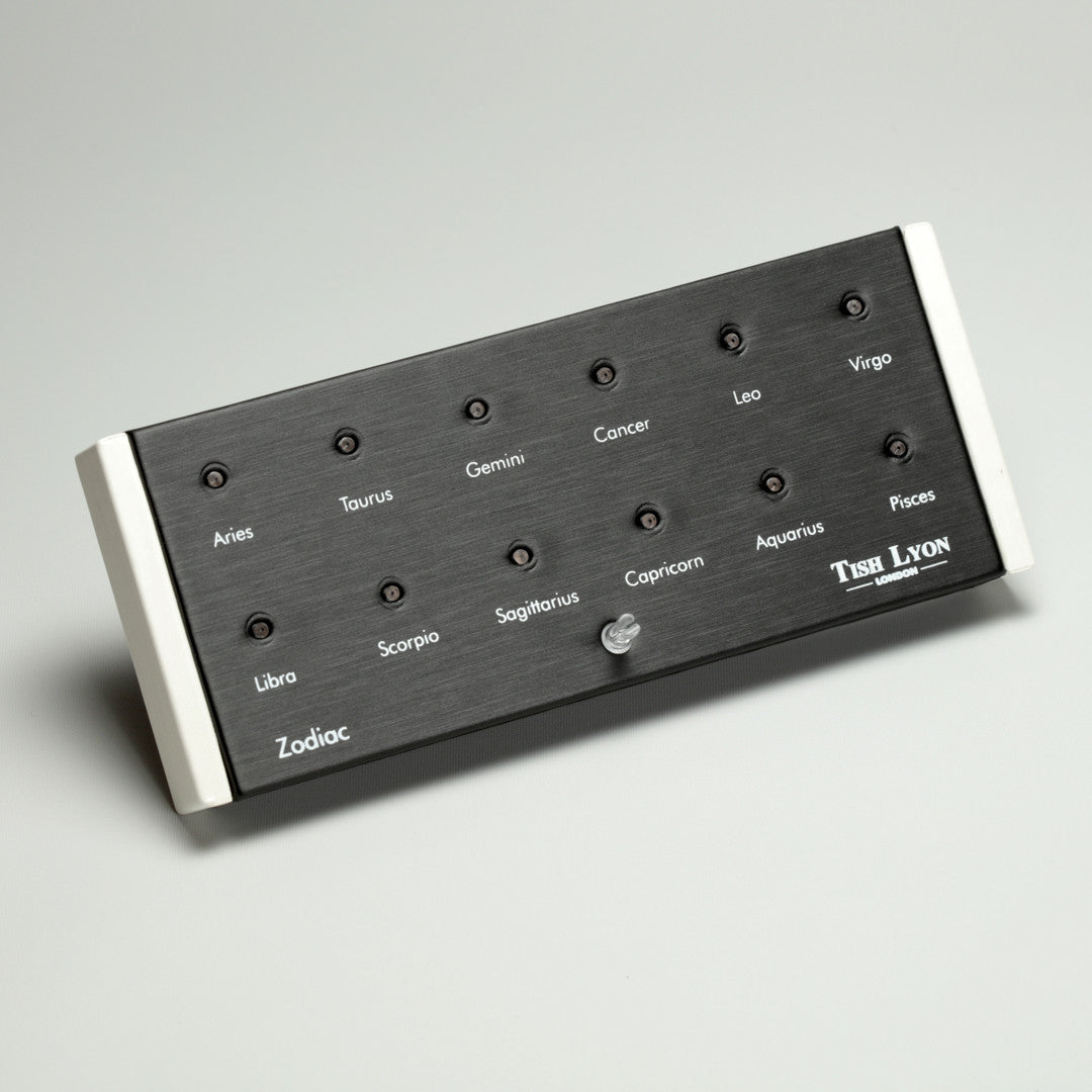 Tish Lyon Zodiac Display - 12 Hole - For Threadless Jewellery Size: Length: 16.5cm Width: 1.5cm Height: 6.5cm Materials: MDF, metal, fabric This product is only available when bought in conjunction with Tish Lyon jewellery.