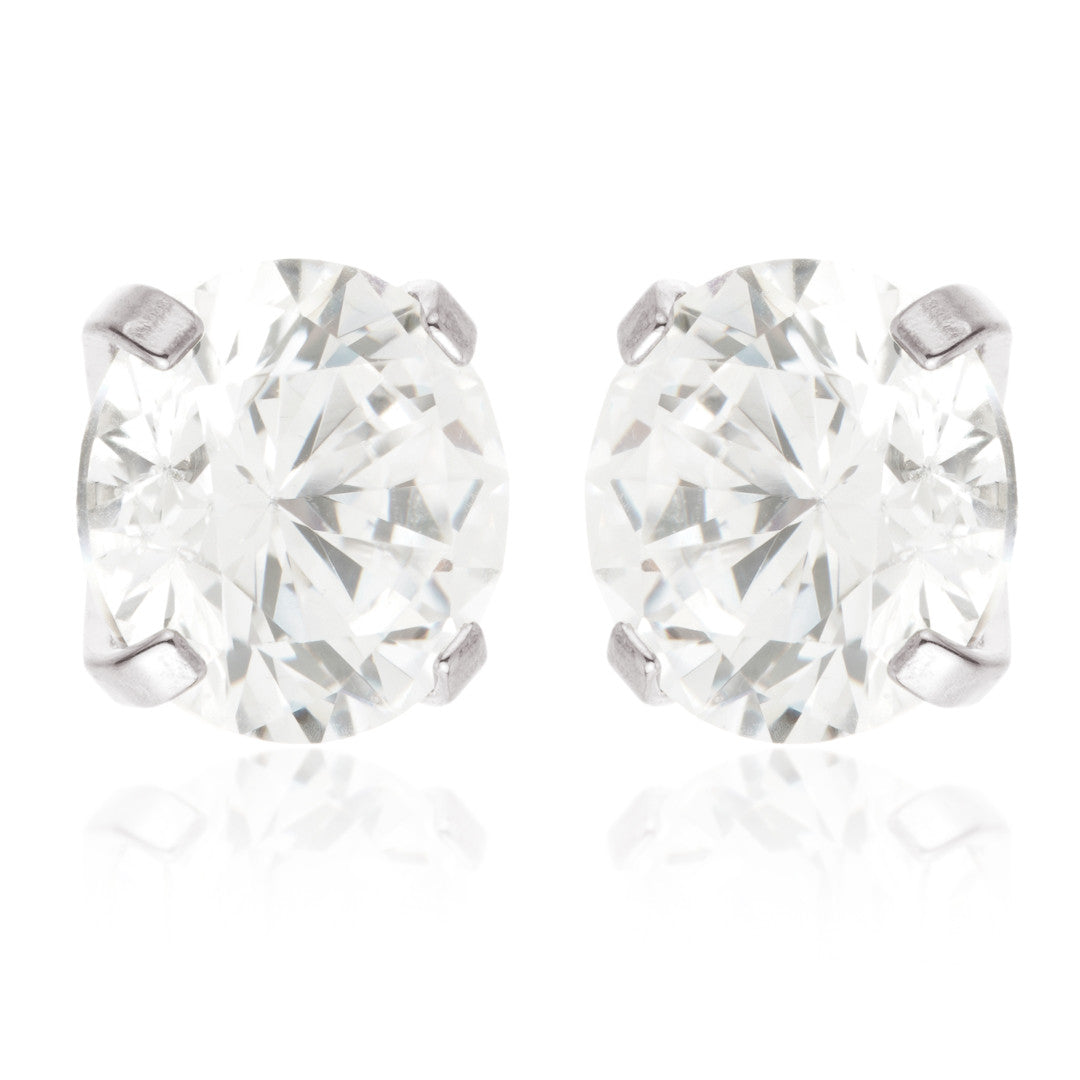 Titanium Prong-Set Jewelled Stud Earrings (butterfly back)(Pair) Gauge: 0.8mm Earring Post: 11mm Gem Colour: Crystal Gem Size: 2.5mm / 3mm/ 4mm / 5mm / 6mm Medical Grade Titanium 6Al-4VEli ASTM:F-136