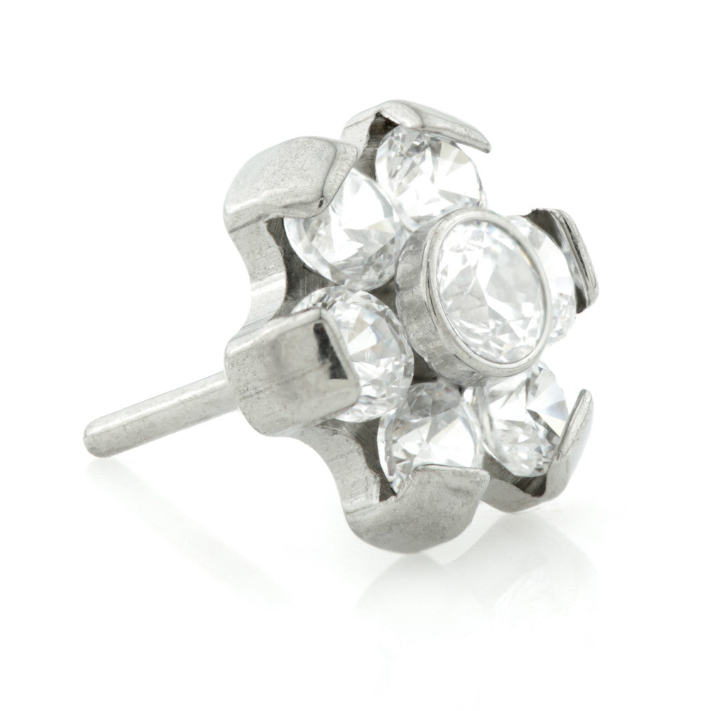 Titanium Flower with Crystal Gems. 6 Petal Flower and Gem inside. Threadless Attachment Gem Colour: Crystal