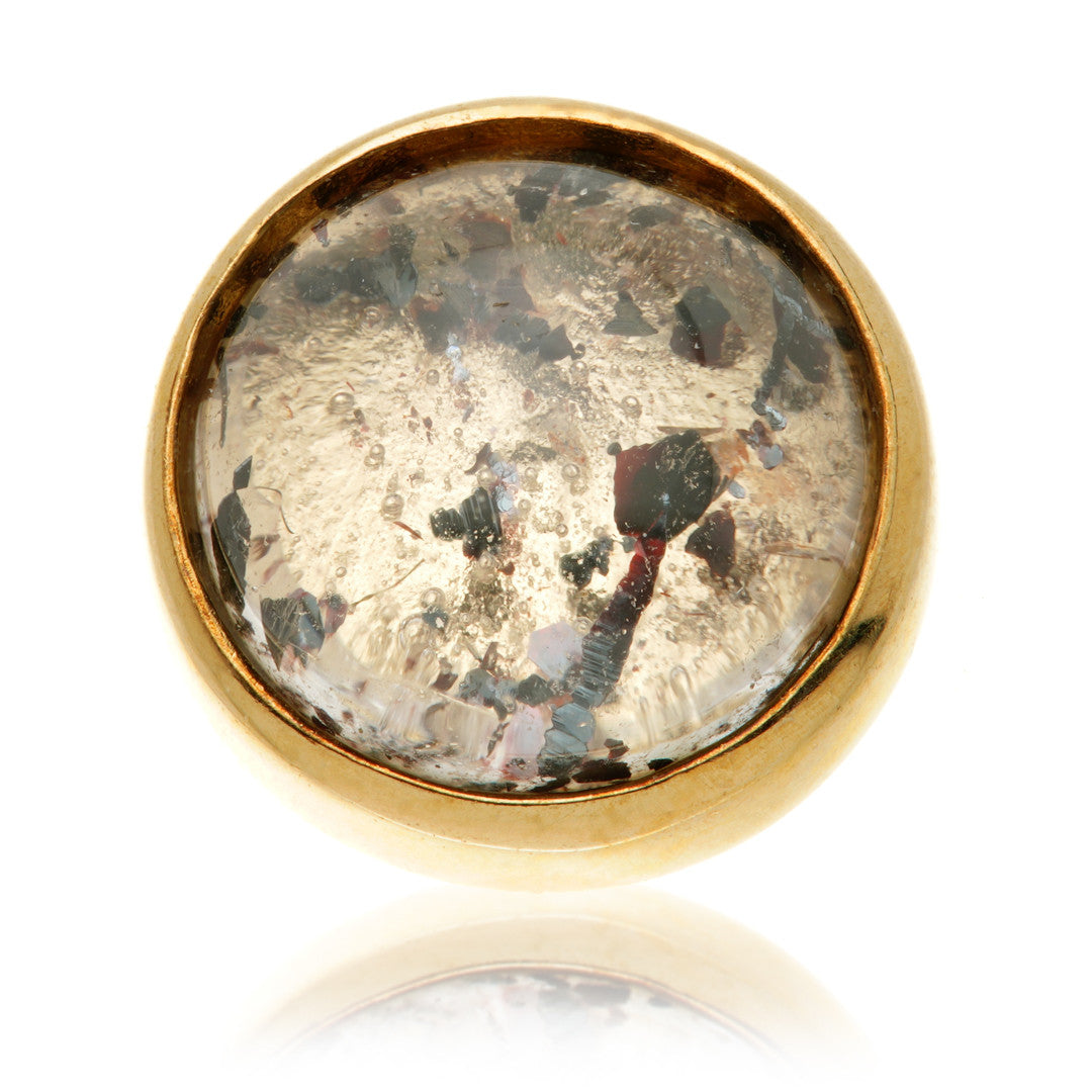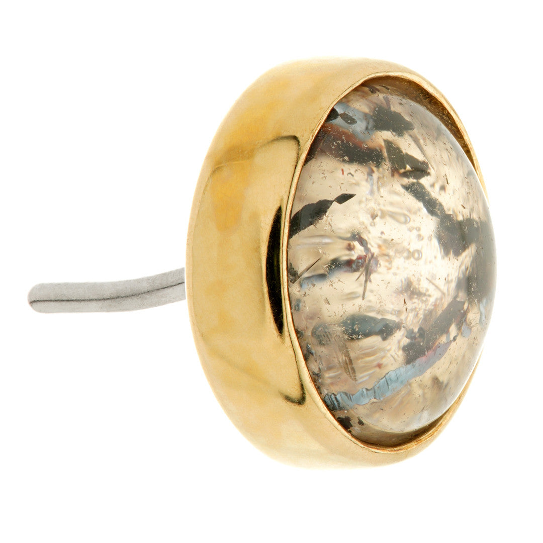 TL - 14ct Gold Threadless Rutilated Quartz Cabochon Round Pin Attachment