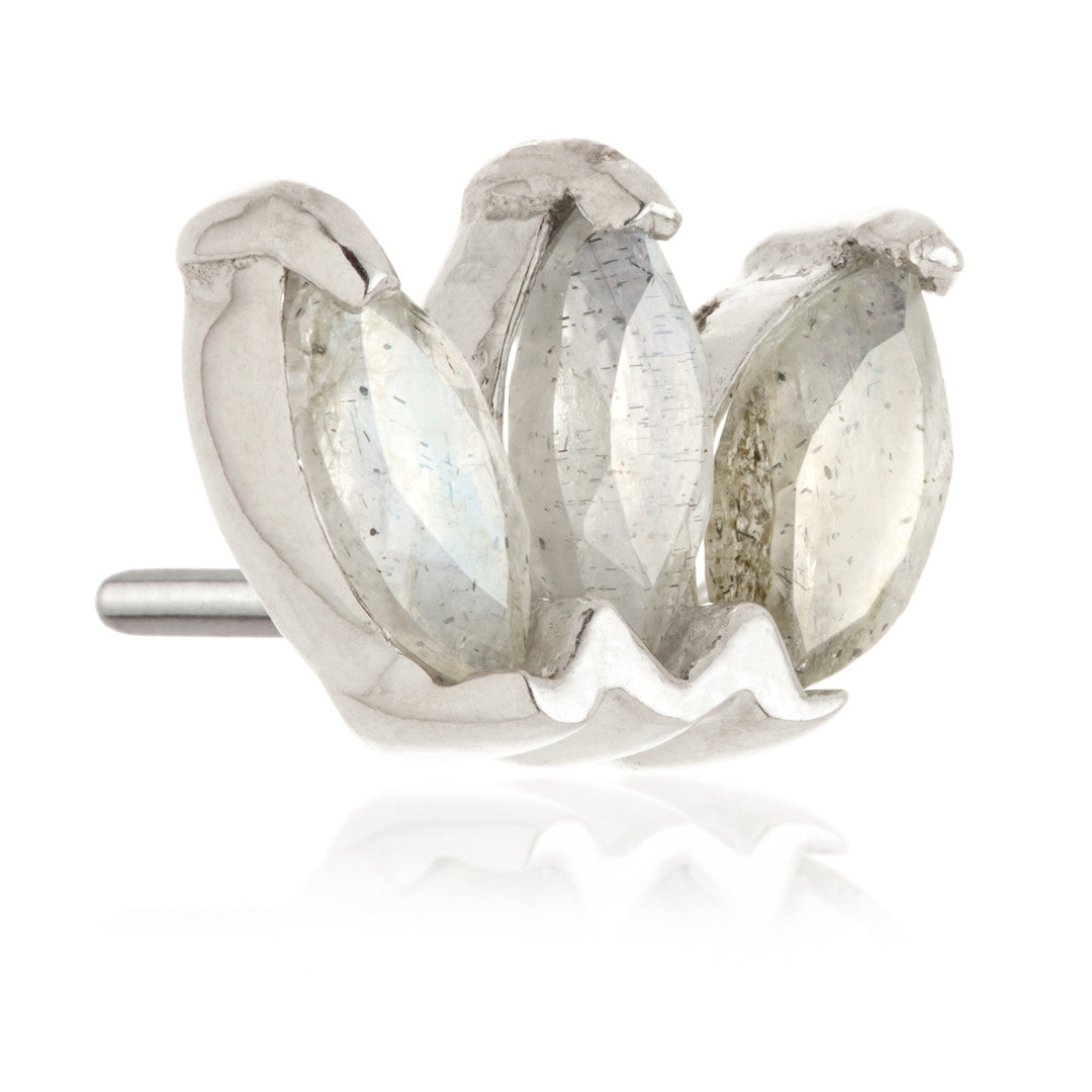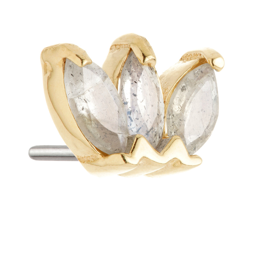 TISH LYON TL - 14ct Gold Threadless Triple Marquise Labradorite Pin Attachment Gold Colour: Yellow or WhiteGem Stone: Labradorite316L Surgical Steel Pin Suitable for initial piercing