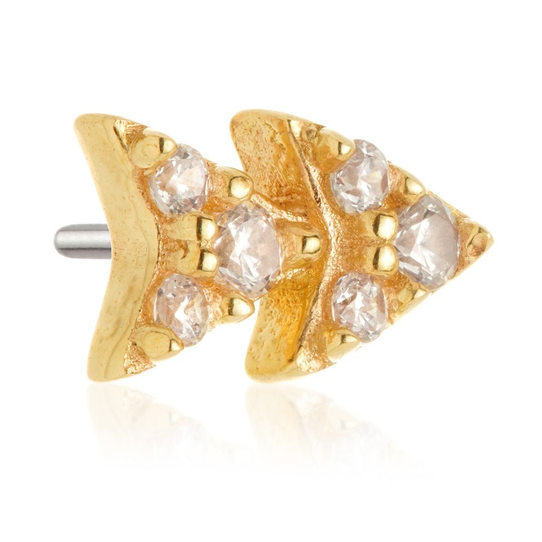 TISH LYON 14ct & Threadless Gold & Double Arrow Gem AttachmentAttachment Size: & 5.5*3.2mmGold Colour: YellowGem Colour: & Crystal & CZ Gem Stones & 316L Surgical Steel Pin & Packaged in small presentation box & Suitable for initial piercing &