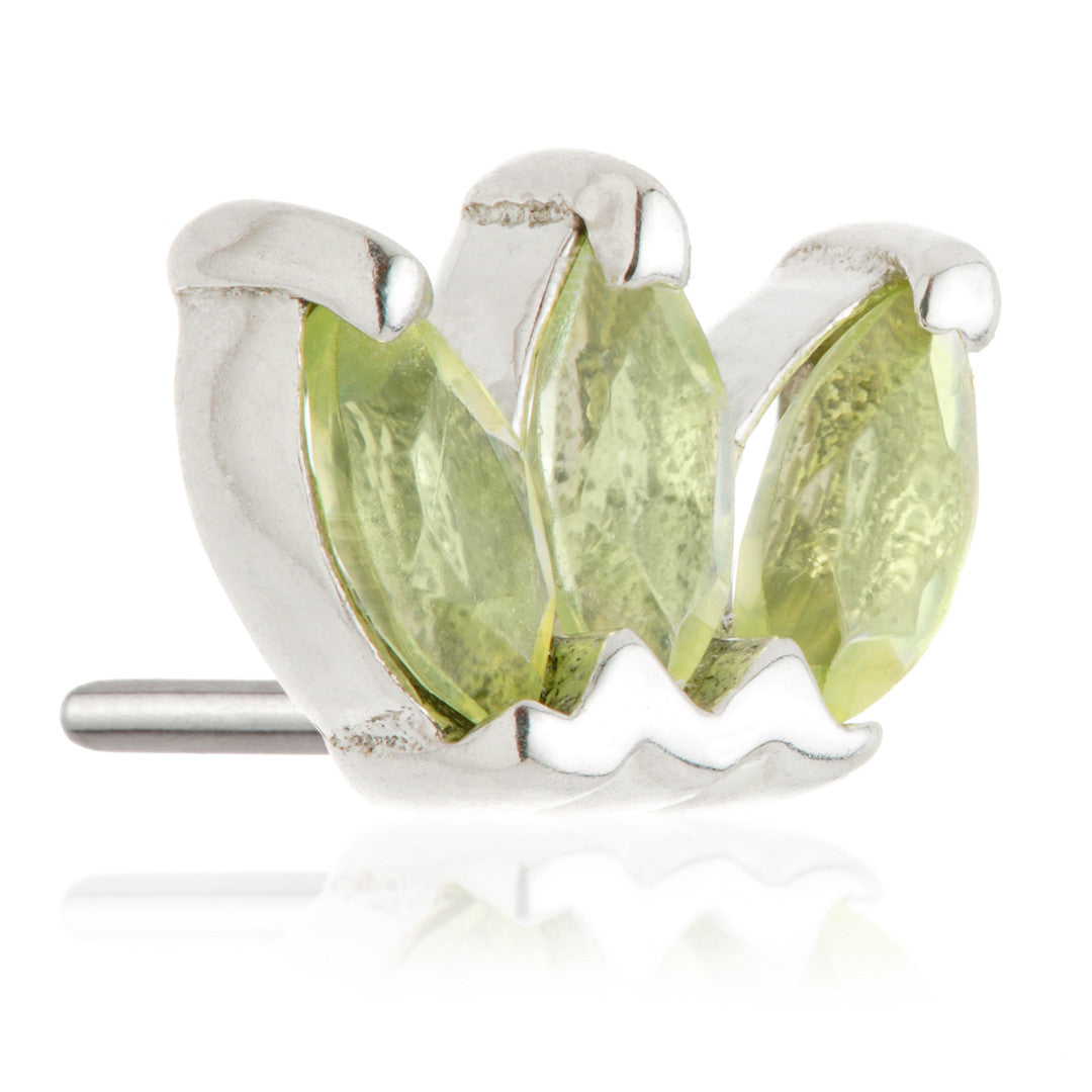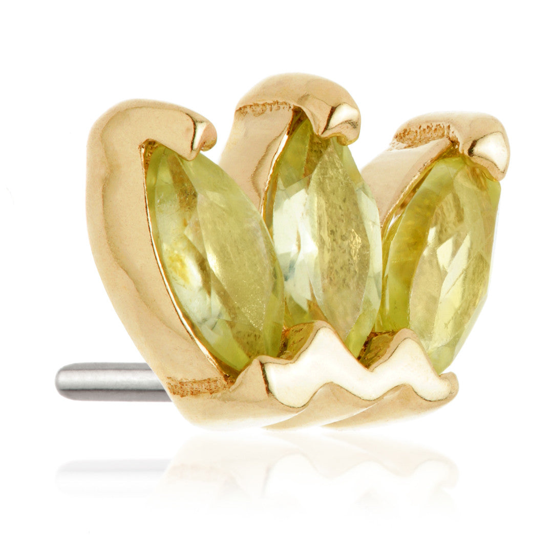 TISH LYON TL - 14ct Threadless Gold Triple Marquise Peridot Pin Attachment Gold Colour: Yellow or WhiteGem Stone: Peridot316L Surgical Steel Pin Packaged in a small presentation boxSuitable for initial piercing