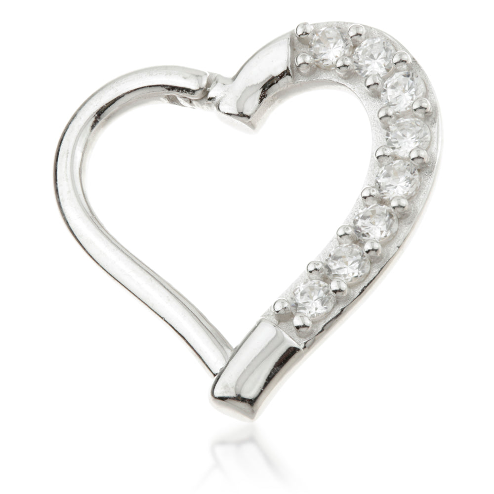 TISH LYON® - Gem Hinge Top Heart Ring (Hinge From the Top) 14ct Yellow, White or Rose Gold Size: 1.2mm x 7/9mm Left = wear on left / gems are on right side when flat Right = wear on right / gems are on left side when flat For Nose, Cartilage, Tragus, etc 14ct Suitable for initial piercing