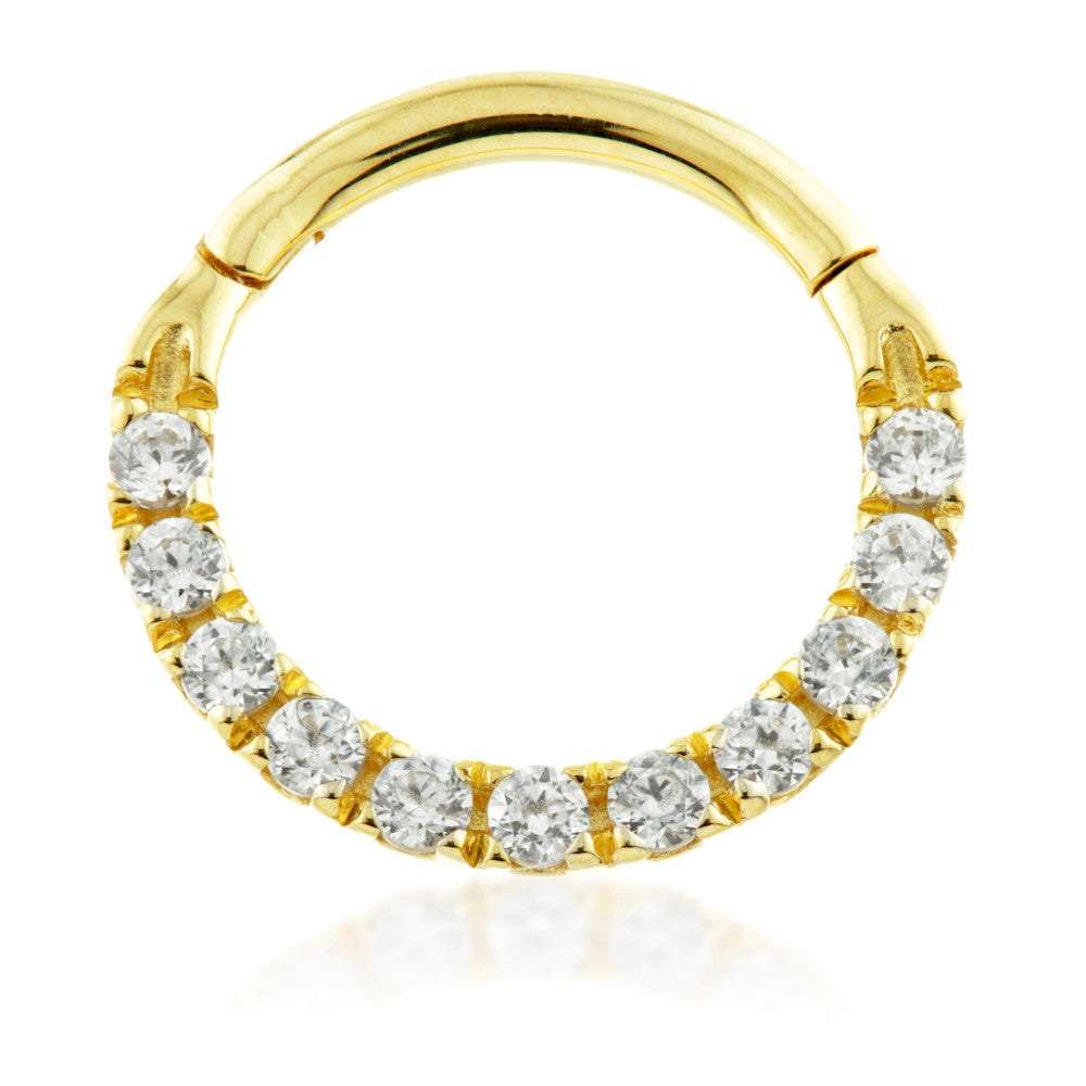 TL - 18ct Gold Pavé Jewelled Eternity Swarovski Daith / Septum Ring