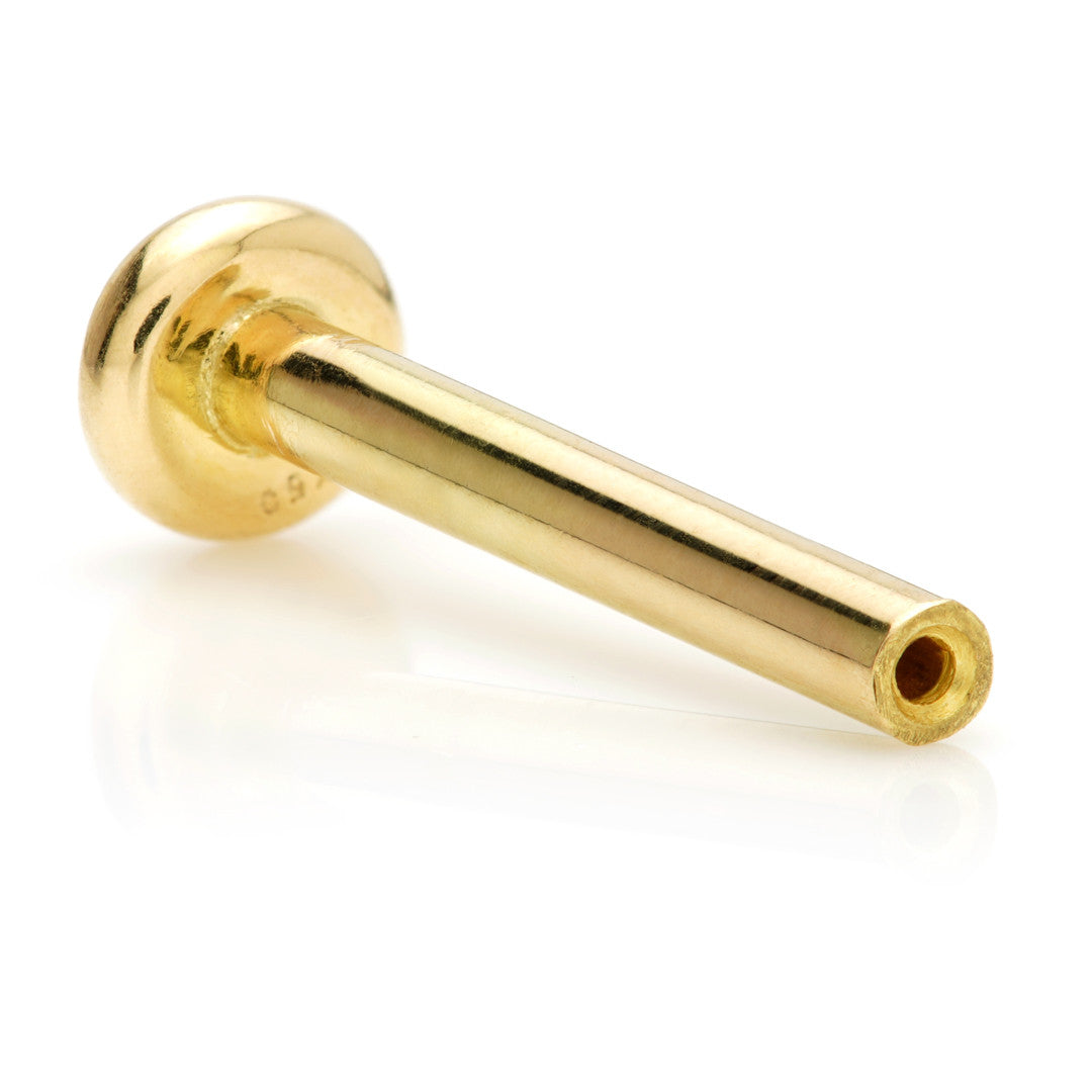 TISH LYON® 18ct Yellow Gold Threadless Labret Stem Gauge: 1.2mm Length: 6, 7, 8 & 10mm Base Size: 3mm Gold Colour: Yellow Packaged in small grey presentation box Suitable for initial piercing