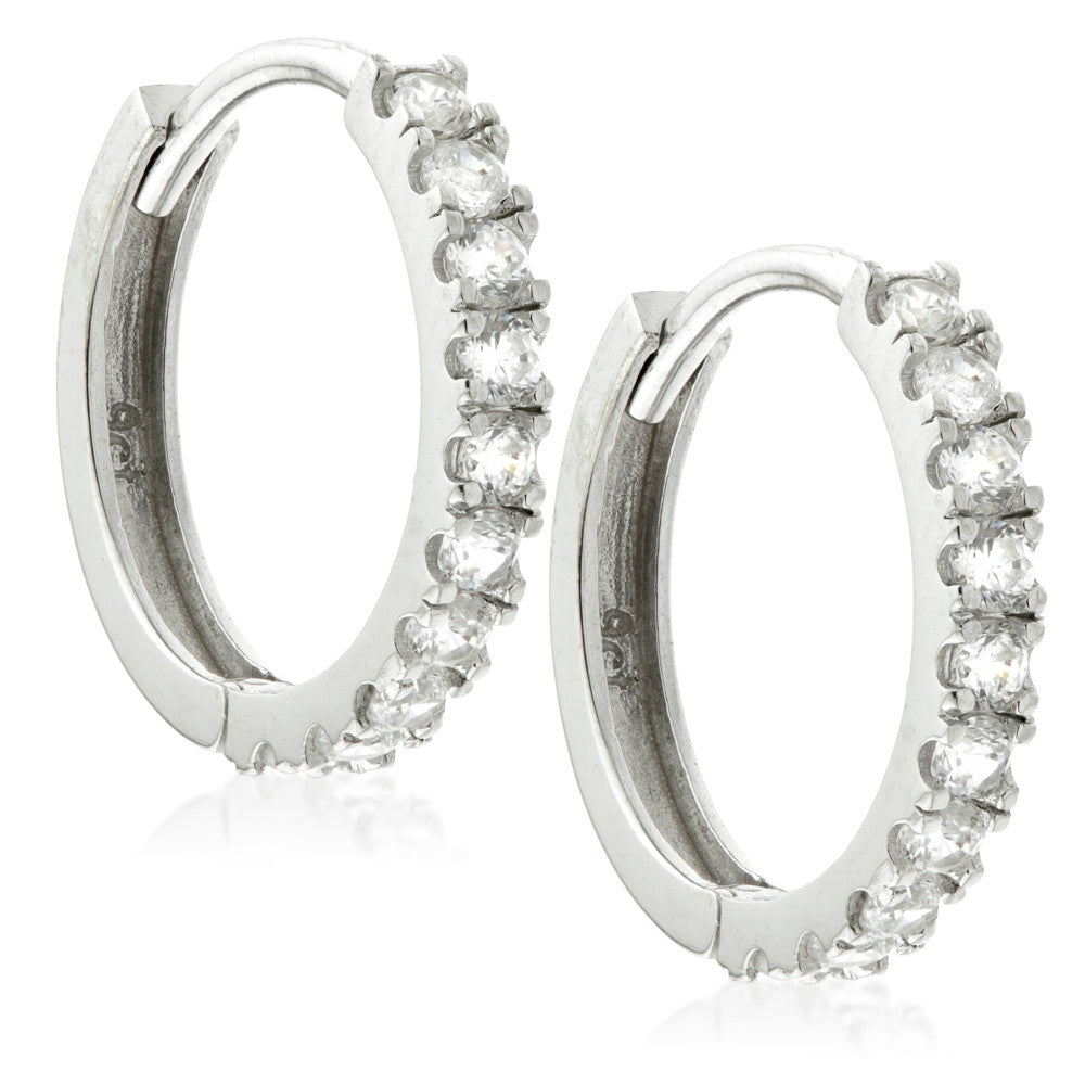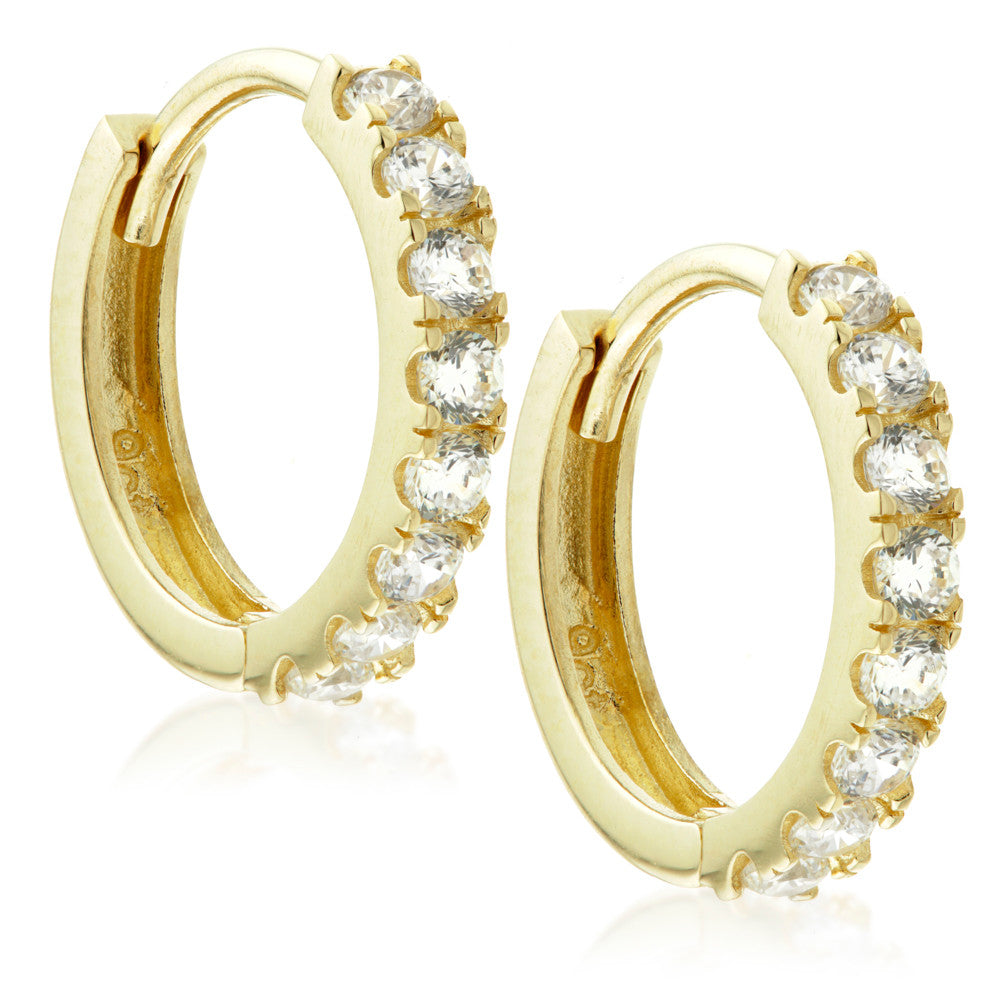 TISH LYON® - Pave Gem Eternity Hinge Huggie Hoop Earrings 9ct Yellow or White Gold CZ Crystal Gems Inner Diameter Size: 6mm / 8mm / 10mm / 12mm For Lobe / Second Lobe, etc