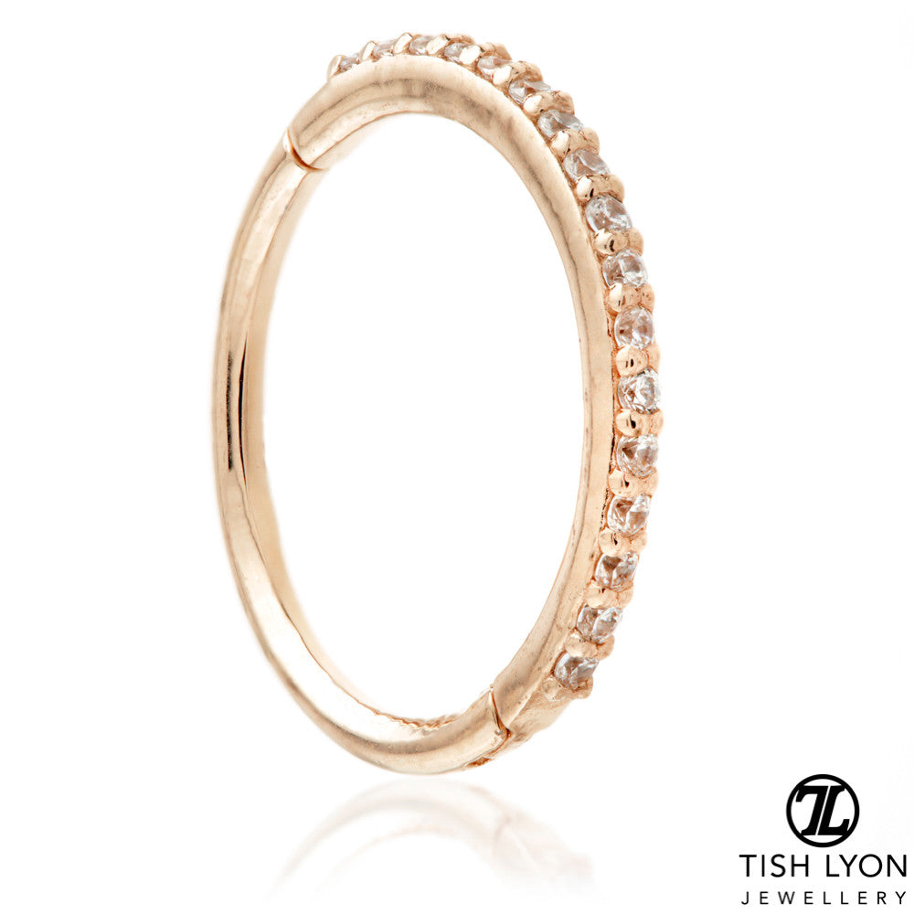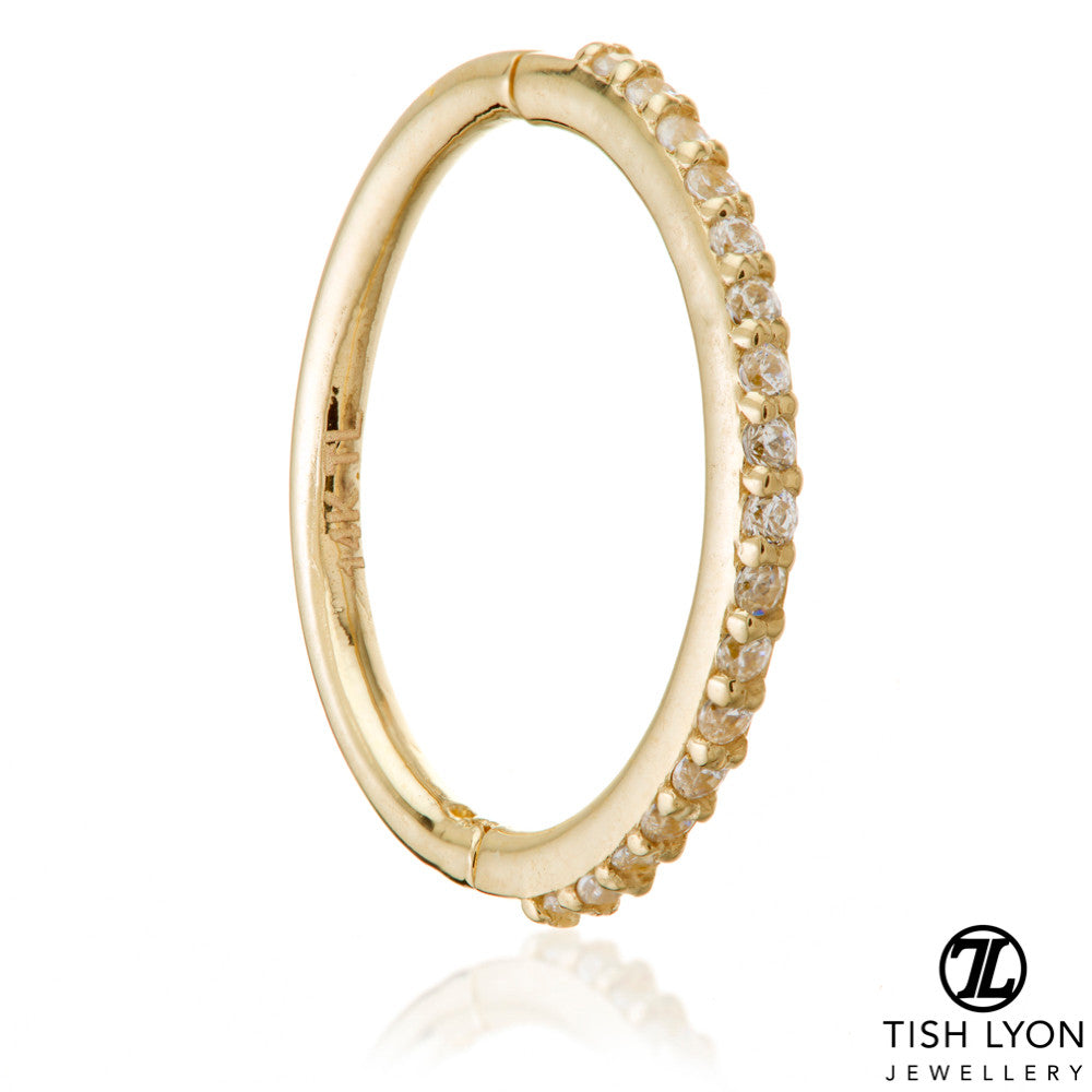 TISH LYON® - Pave Gem Eternity Hinge Ring 9ct or 14ct Yellow Gold Size: 1.2mm x 12mm - For Conch CZ Crystal Gems (17x1mm) 14ct Suitable for initial piercing Laser Mark - TL