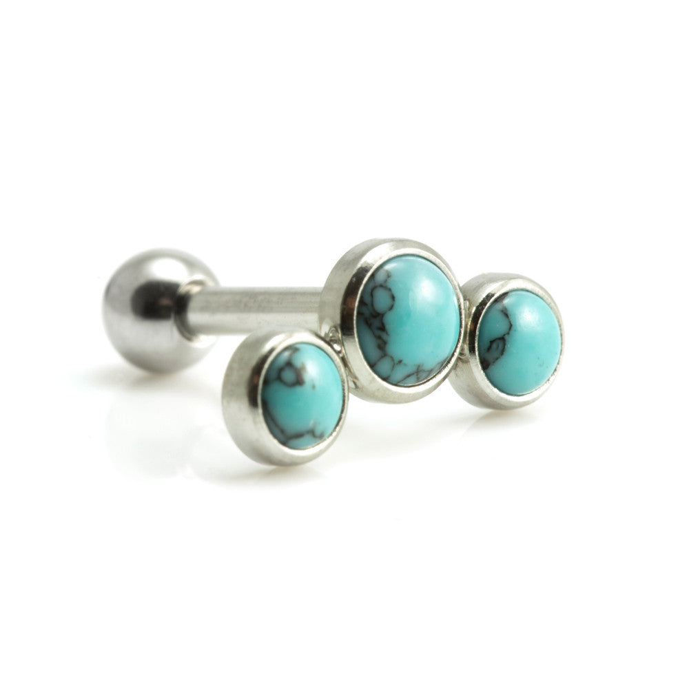 Triple Turquoise Stone Disks (dyed howlite) on 316L Steel Microbar Gauge: 1.2mm Length: 6mm Disk Sizes 3/4/3mm or 3/3/3mm