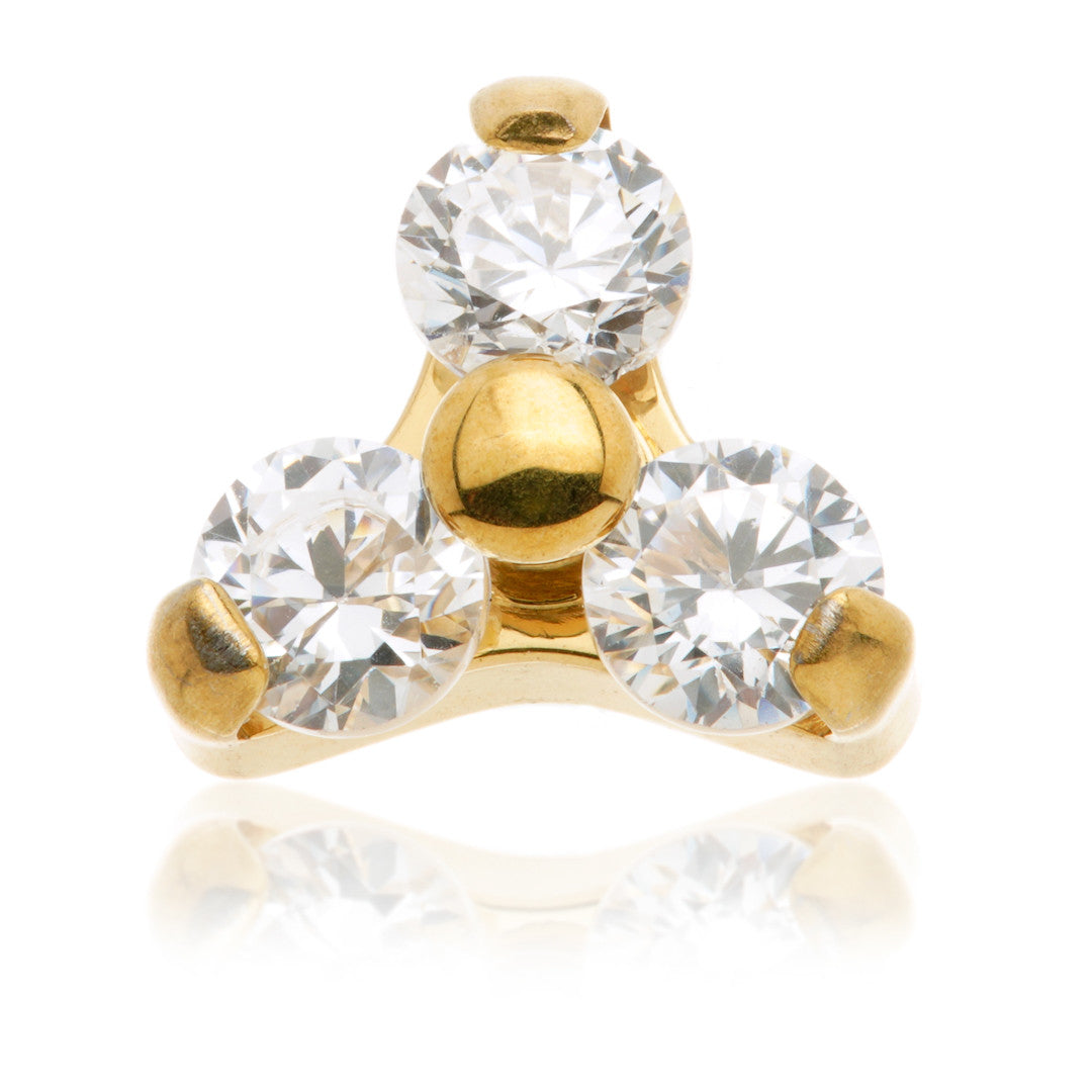 Zircon Gold Internal Ti Micro Labret with Ti Gem Trinity Gauge: 1.2mm (thread 0.9mm) Size: 8mm Medium Crystal Trinity Attachment Medical Grade Titanium 6Al-4VEli ASTM:F-136