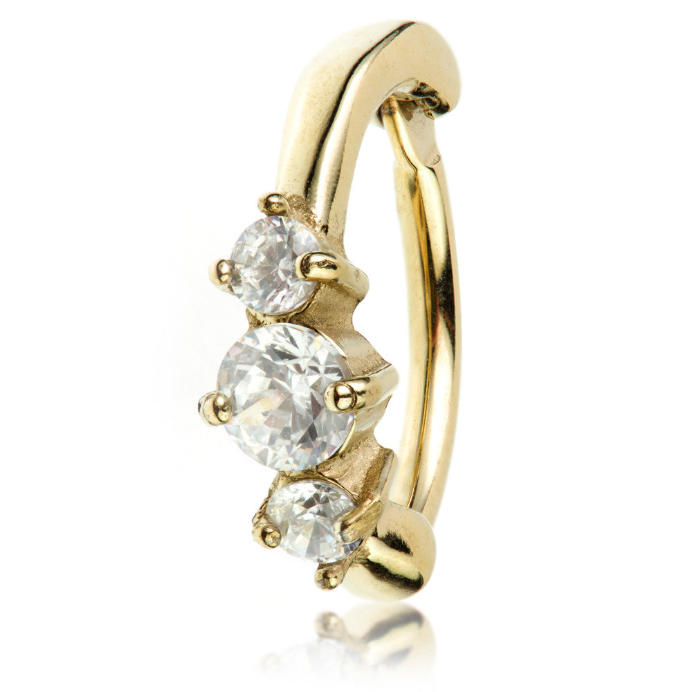 Zircon Gold Steel Hinged Prong Gem Rook Ring