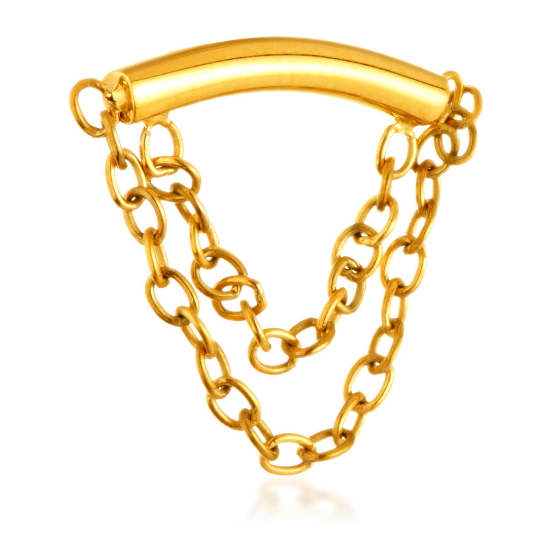 Zircon Gold Ti Internal Curved Bar Double Chain Attachment Gauge: 1.2mm (0.9mm thread) Attachment Size: 10mm x 1.5mm Gem Colour: CR Medical Grade Titanium 6Al-4VEli ASTM:F-136