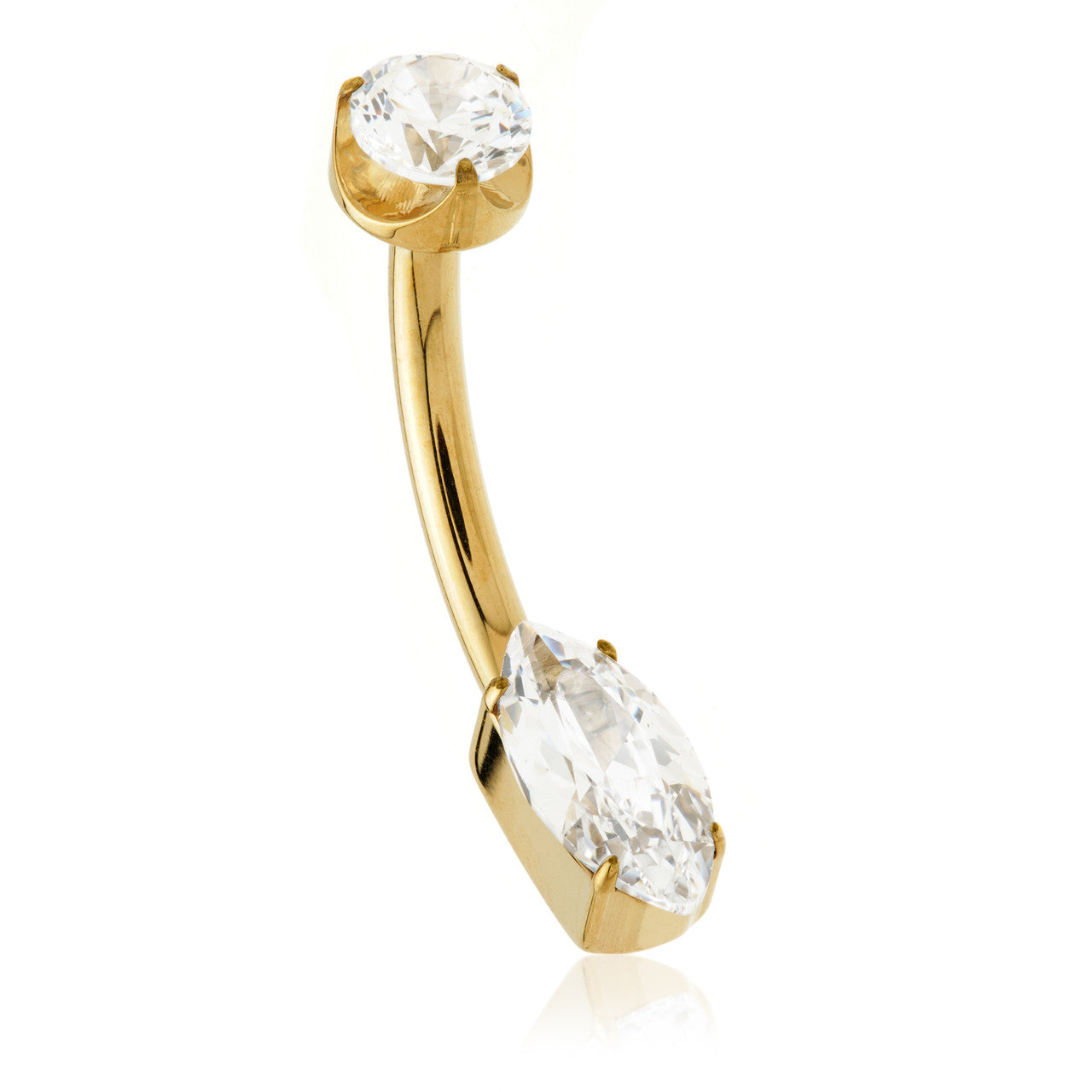 Zircon Gold Ti Internal Jewelled Marquise Navel Bar
