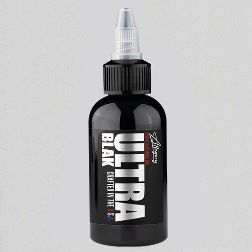 Best for lining, shading, heavy saturation and blackouts. Allegory Ultra Blak offers the same smooth consistent blend as their standard Blak, but now in their most concentrated formula to date. This premier ink is for artists who are looking to take their craft to the next level. This rich black ink comes in a 2oz or 8oz pet clear squat Boston round bottle. Each bottle is heat sealed with a tamper resistant twist-dispensing top. Lot and expiration are printed on every bottle.