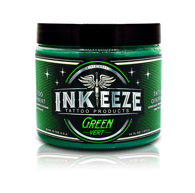 INK-EEZE Green Tattoo Ointment is specifically designed with vitamins A, C and E along with botanical extracts for use during the application of your new tattoo and as an aftercare product. &ltstrong&gtDirections:&lt/strong&gt For the artist - Apply as needed during the tattoo application. For aftercare - Use sparingly as needed post-tattoo. &ltstrong&gtWarnings:&lt/strong&gt Keep out of reach of children. Avoid contact with eyes. In case of accidental contact with eyes rinse with cold water. &ltstrong&gtInactive ingredients:&lt/strong&gt Petrolatum Propanediol Lavandula Angustifolia Oil Retinyl Palmitate Tocopheryl Acetate Glycyrrhiza Glabra Extract Camellia Sinensis Leaf Extract Ascorbic Acid Polysorbate-20 Punica Granatum Fruit Extract Green MX-144A DC Green #6 BHT