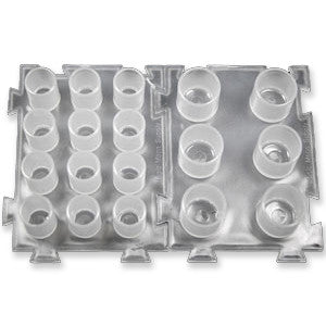Colour Caps System - 25 pcs Sizes: Small - 12 caps per strip Large - 6 caps per strip Custom made push-fit system, rounded off colour cap interior, disposable colour cap tubs - The worlds first! Due to a custom made push-fit system no more single colour caps will slip out of place. The 2 sizes of colour cap systems are connected easily and can be expanded endlessly. With enough space between the caps, a merging of colours can be ruled out completely.
