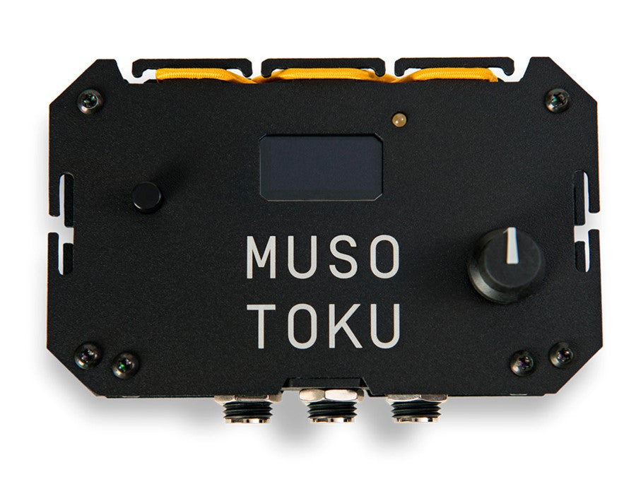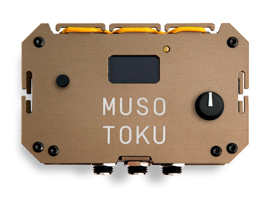 Available in Black or Burnt Bronze. The DUAL USB-C model has independent Output for x2 Machines (with independent memory preset for each). The USB-C power input is compatible with Laptop adapters. This means that this MUSOTOKU can work with Laptop Power-bank batteries of 60W while delivering the full 5A power. This adds a new layer of convenience because you can run the MUSOTOKU DUAL model at full performance from a Battery for hours and hours off the grid. You can use the DUAL USB-C model with a foot switch (pedal) as usual. Or you can also work without it by using our continuous mode feature. We have maintained the simplicity of usage with this model. Just change the channel by pressing the push-button once (click). No need to configure anything about channels or memories. Just use it intuitively and enjoy all the power inside. MUSOTOKU MK-2 is one of the most powerful power stations you can get at this very small size. It delivers 5 Amps of power which will make your machines run smoothly, but solid and consistently. Build-in aluminum for the best durability and weight balance. The power supply is designed to work in any country in the world, no matter if you are using 220V/50Hz or 110V/60Hz. Its design ensures that your voltage is always stable even with the annoying fluctuations of power that plague the conventions. USB-C power input compatible with Laptop adapters. It can work also with Laptop Batteries 5 Amps Consistent Power Independent Output for x2 Machines (2 memory presets) 2 - 16V in 0.1V Steps Works with Coil and Rotary machines x3 types of Pedal: Standard, Continuous Mode (Free-Foot), one-touch pedal NITRO Boost for fast Startup Mode Auto Power-off Includes MUSOTOKU Power Supply 5 Amps USB-C Cable 60W USB-C Power Adapter 60W Basic Support (GoPro sticker based) User Manual