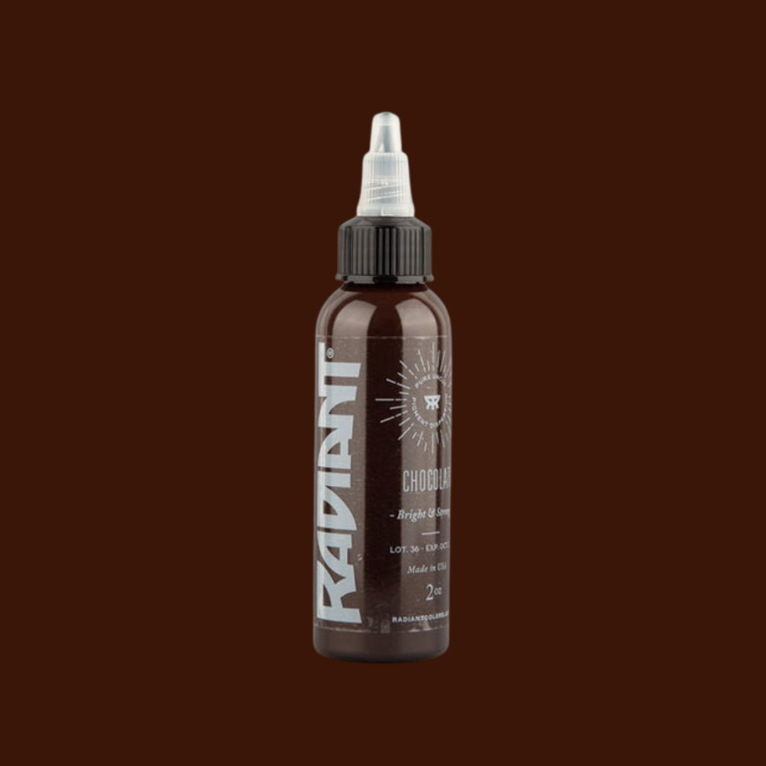 Radiant's most decadent brown. Single bottle of https://www.wholesalebodyjewellery.com/tattoo-supplies/product/tattoo-inks/radiant.html Radiant Ink . Available in 1oz. Sterilised, easy to apply, pure, uncut homogenised pigment.