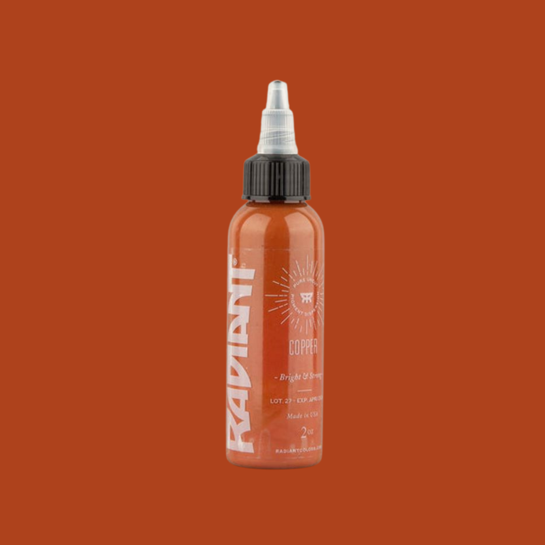 A shiny and strong metal tone. Single bottle of https://www.wholesalebodyjewellery.com/tattoo-supplies/product/tattoo-inks/radiant.html Radiant Ink . Available in 1oz. Sterilised, easy to apply, pure, uncut homogenised pigment.
