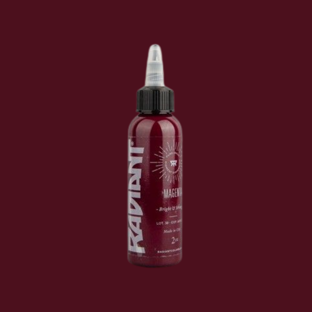 A glowing combination of red and purple. Single bottle of https://www.wholesalebodyjewellery.com/tattoo-supplies/product/tattoo-inks/radiant.html Radiant Ink . Available in 1oz. Sterilised, easy to apply, pure, uncut homogenised pigment.