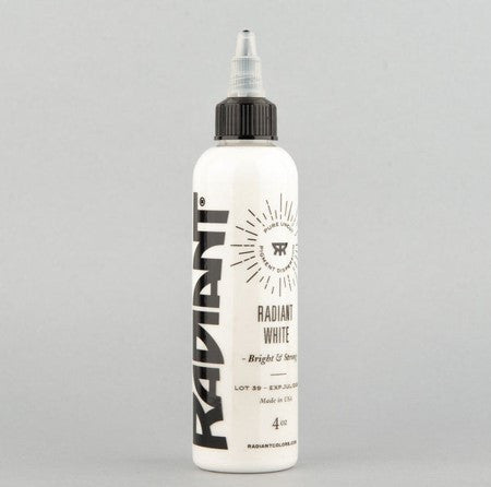 <p>The strongest and brightest white colour, perfect to stand out from the smallest to the largest details and lines in white.</p> <p>Single bottle of <a href="https://www.wholesalebodyjewellery.com/tattoo-supplies/product/tattoo-inks/radiant.html">Radiant Ink</a>.<br> Available in 1oz, 2oz or 4oz.</p> <p>Sterilised, easy to apply, pure, uncut homogenised pigment.</p>