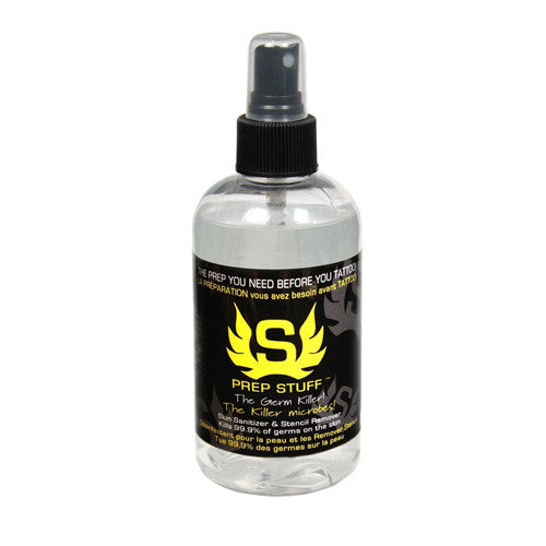 Prep Stuff is a revolutionizing new product for prepping the skin prior to tattooing! It kills 99.9% of germs and microbes including staph without removing vital skin oils! Using Prep Stuff before applying your tattoo stencil will hold your stencil on even better when using Stencil Stuff. Also used as a stencil remover! If your not happy with the placement of your Tattoo Stencil, use Prep Stuff to clean it off to reapply the stencil. Shake well before use.