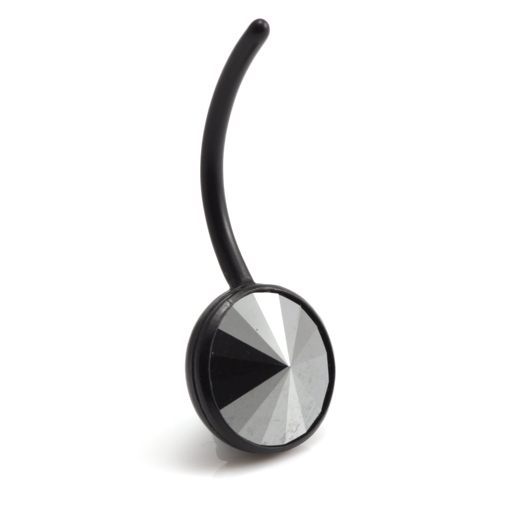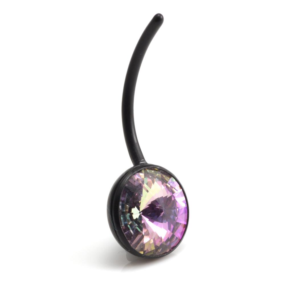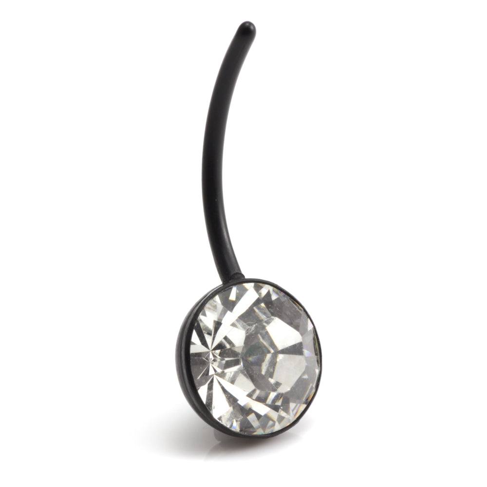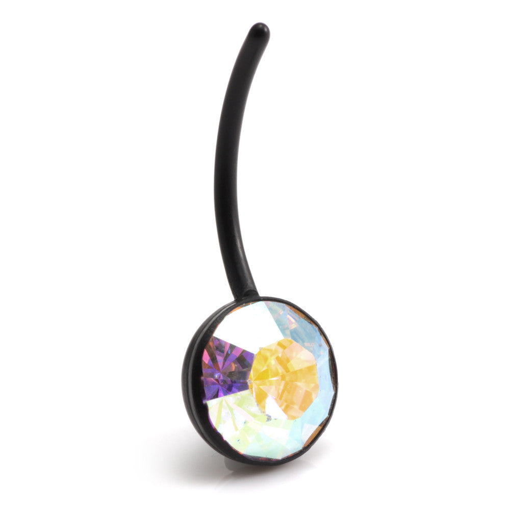 10mm Gem Stone Belly Bar in Bioflex. Comes with no top ball. Can be autoclaved and used for initial piercing. Colour of Bioflex is black. Gem Colours: Crystal / AB Crystal / Vitrial Light / Hematite Gauge: 1.6mm Length: 18mm (can be cut to size)