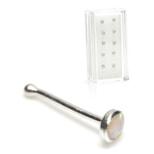 925 Opal Disk Silver Nose Pins in Display Box Straight back with ball Pink Opal Box of 10
