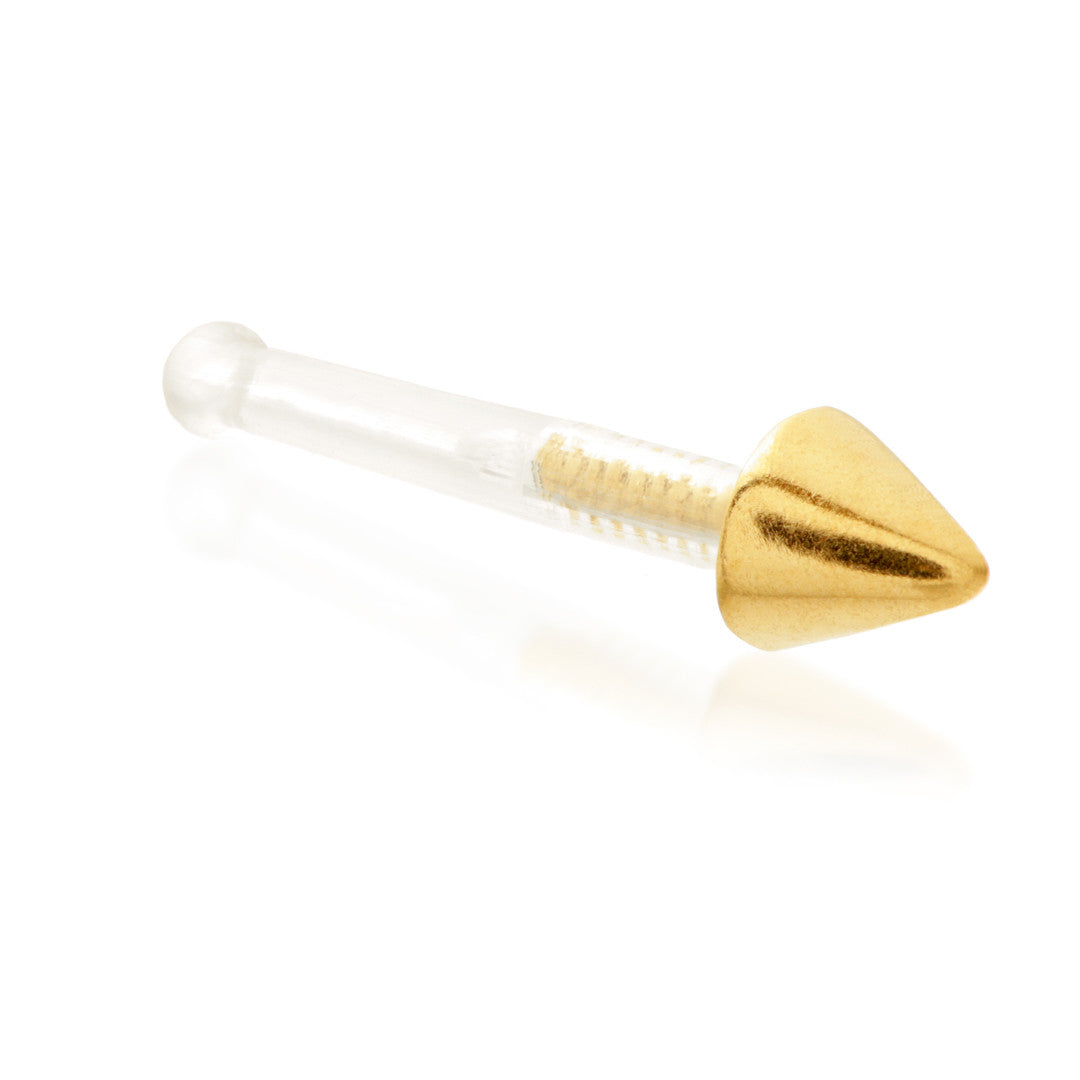 18ct Gold Cone on Bioplast Nose Bone Both stems come with product Gold top unsuitable for autoclaving Gauge - 0.8mm (Straight and curled stem)