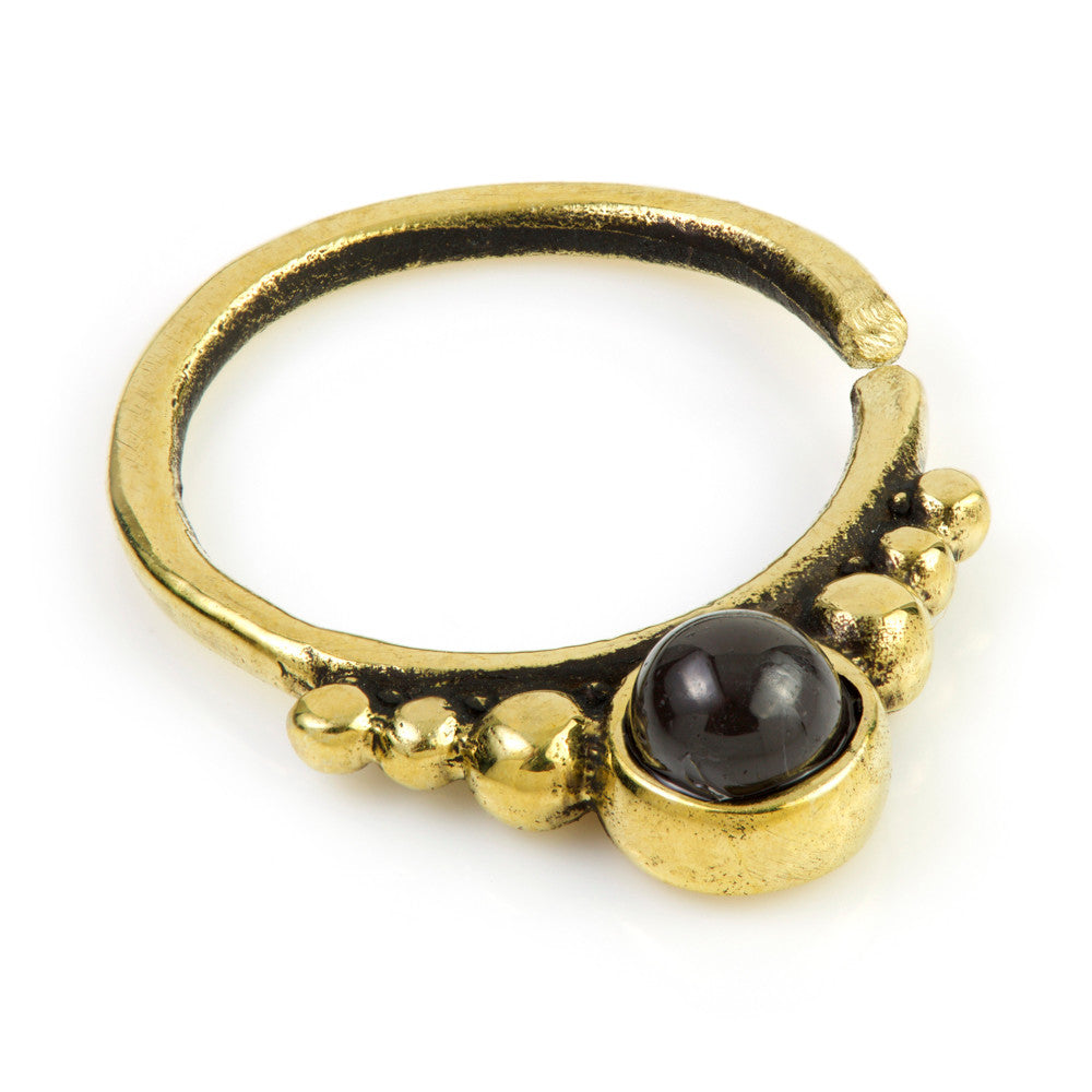 Black Onyx Ornate Brass Open Ring Gauge: 1.2mm / 16g Internal Diameter: 8mm (approx) Not for initial piercing, only to be worn in healed piercings