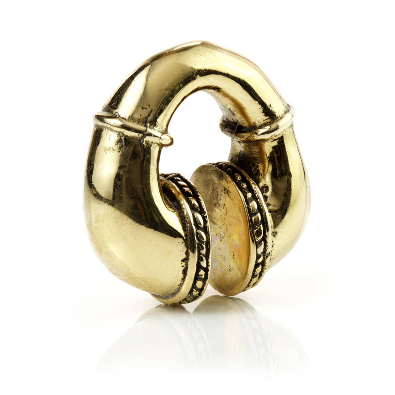 Round Brass Ear Weight Weight: 23.5gms Gauge: 10mm at base (5.5mm at top) External Diameter: 30mm x 28mm Only to be worn in healed piercings