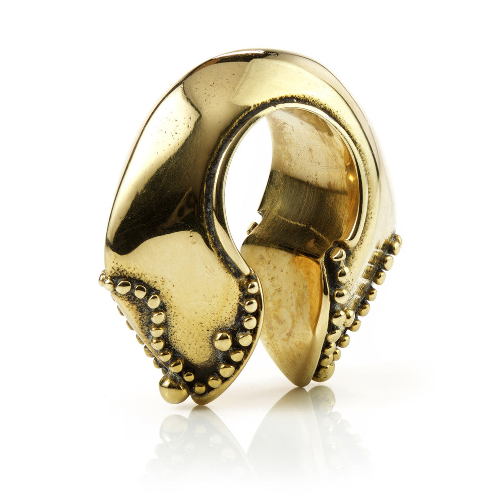 Round Brass Ear Weight Weight: 17.5gms Gauge: 10mm at base (5.5mm at top) External Diameter: 30mm x 28mm Only to be worn in healed piercings