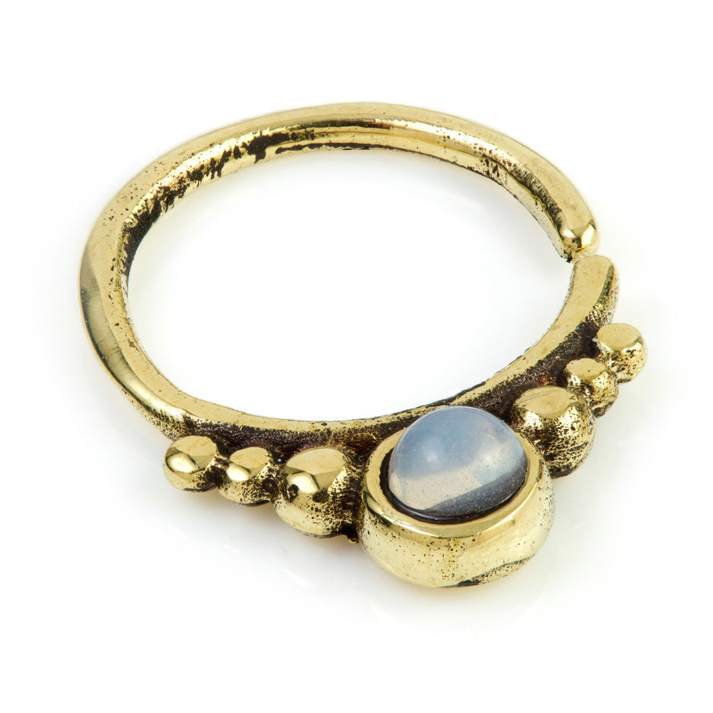Moonstone Ornate Brass Open Ring Gauge: 1.2mm / 16g Internal Diameter: 8mm (approx) Not for initial piercing, only to be worn in healed piercings