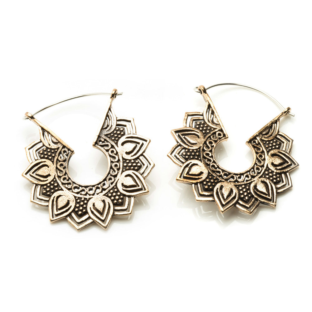 Copper Lotus Flower Hoop Earrings (Pair)