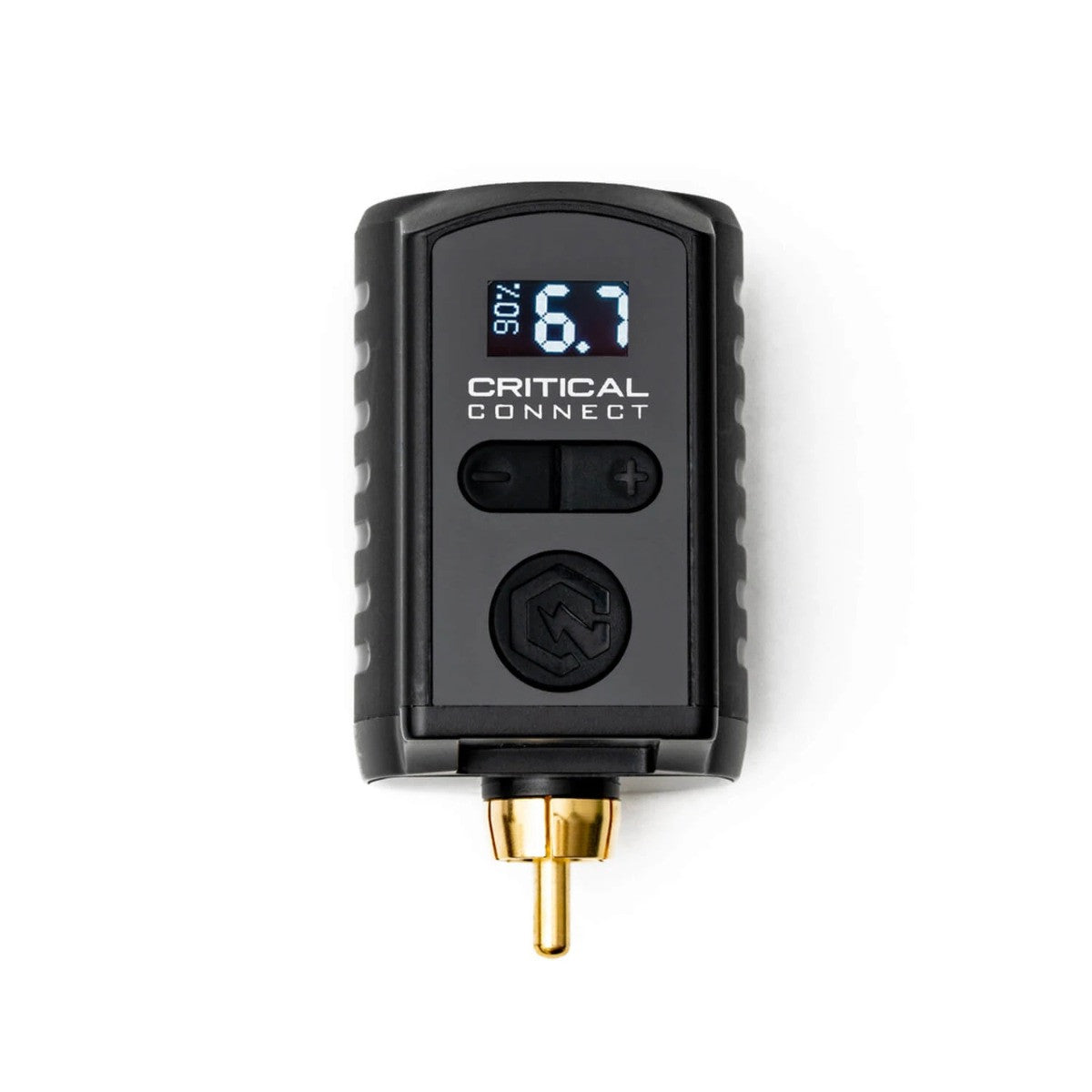 Critical Connect Universal Battery RCA The Critical Connect Universal Battery utilizes & & Bluetooth 5.0 & and & & Critical Core & technology - created for consistent power and extreme accuracy. Experience ultimate power, freedom, and versatility. & & Features Benefits: & Crisp OLED Display Precise Voltage & Ergonomic Design & Utilizes Bluetooth 5.0 Technology & Utilizes Critical Core created for consistent power and extreme accuracy. & Available in both RCA 3.5mm connections & Compatible with most rotary brands Featured jumpstart assist for large needle groupings and hard starting motors & Control the ON/OFF function of the batteries through two modes: Continuous Momentary & Compatible wirelessly connects with the Critical Connect Foot Switch* & Connect up to (4) Critical Connect batteries to (1) Critical Connect Foot Switch for adaptability cordless freedom & & Dual charging capable dock (optional) & Up to 5+ hours of tattoo time & Voltage Range 4.5v 13v & Size: 2&euro? L x 1.2&euro? W & Weight: 1.5 oz & USB-C Charger Cable Included & Instruction Manual Included * = & Critical Connect Universal Batteries are compatible wirelessly connect with & ONLY & the Critical Connect Foot Switch (simultaneously, the Critical Connect Foot Switch is ONLY compatible with Critical Connect batteries)