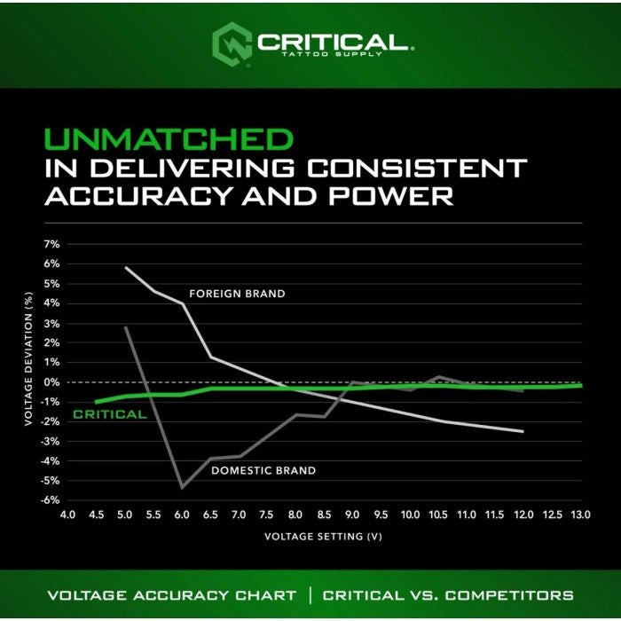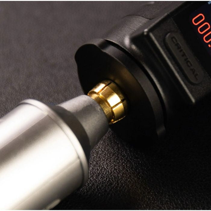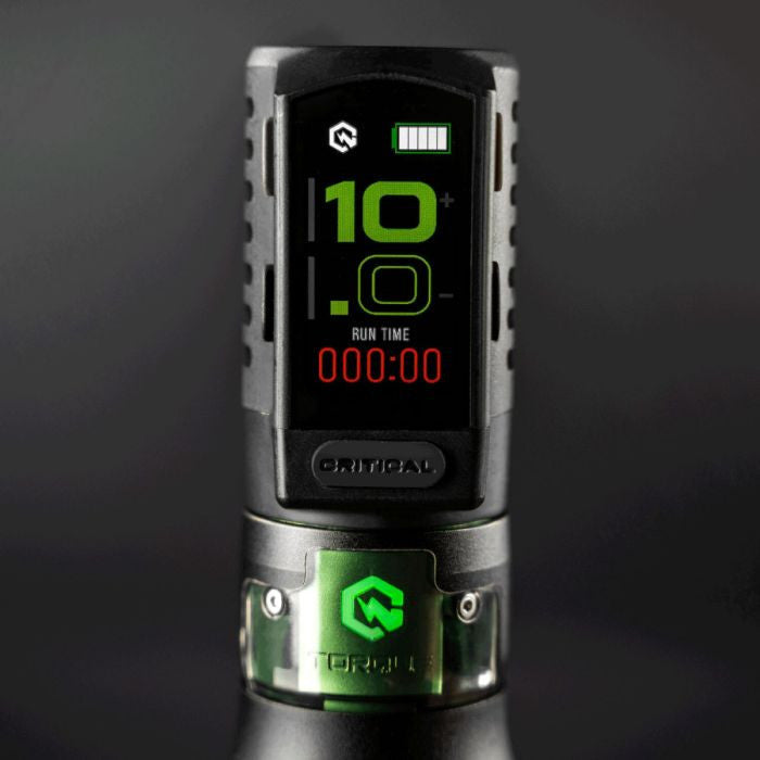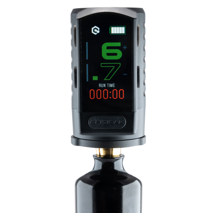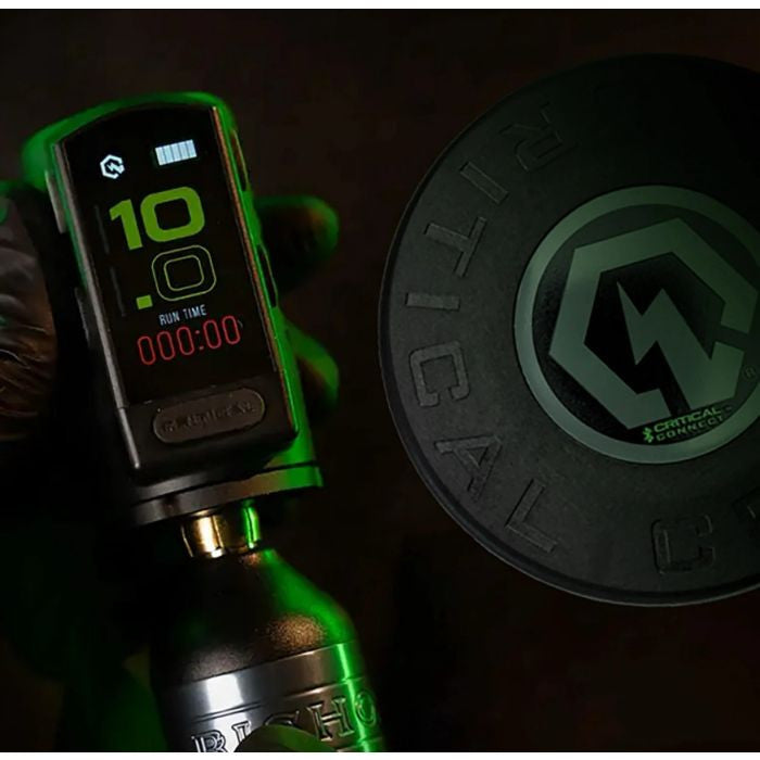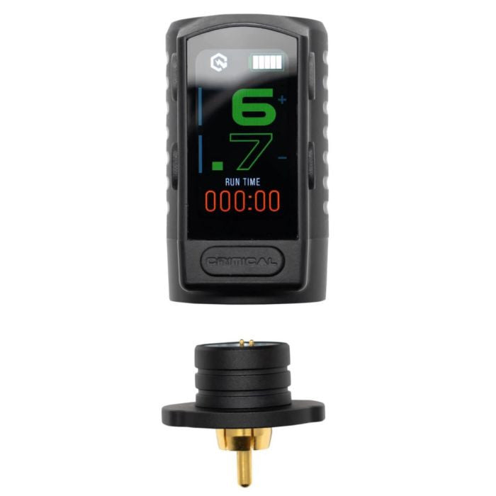 Critical Tattoo is leading the way in wireless tattoo battery technology. Let your Connect V3 power your entire tattoo session and more! The V3 Critical Connect battery is the first battery with a fully functional 1.5-inch colour display and offers a longer runtime than its predecessors thanks to the larger 2000mAH battery. With help from the large display, the powerful battery has additional functions that we already know and love from the Critical wired power supplies, such as two presets (liner/shader), a session/run timer that can be used to measure the time and even an hourly wage! With five buttons, the advanced tattoo battery can be controlled while working and customised to your own needs. The Critical V3 can of course be used with the Torque and Power WAND or ANY tattoo machine with an RCA connection thanks to the included magnetic RCA adapter. Product Features & Specifications: · High capacity of 2000mAh for long battery life, the longest available in the industry! · Large, intuitive 1.5" colour display · Controls for voltage, jump start ON/OFF, hour meter, run/session timer, two presets (e.g. liner/shader), Bluetooth (Critical Connect) for footswitch compatibility · 5 buttons for easy operation · Compatible with all RCA connections thanks to RCA magnetic adapter