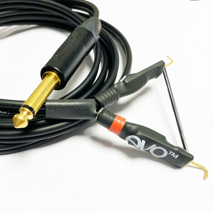 Designed for Coil Tattoo Machines. These cables are strong, flexible, light and easy to clean. Each cord is handmade in the UK and is terminated with the very best connectors available to provide you with an ultra-steady link between your power supply and tattoo machine. We are so confident that your Evolution Cord will outlast and outperform any other cable that we guarantee it for 1 year from purchase. All black 'midnight' appearance Light Flexible PVC Cable(OFC) oxygen free copper conductorsGold sputtered main spring contactsSpring steel torsion springGlass fibre board separating the contactsNeutrik Gold plated &frac14&euro¬Ã¹ jack with Black shell