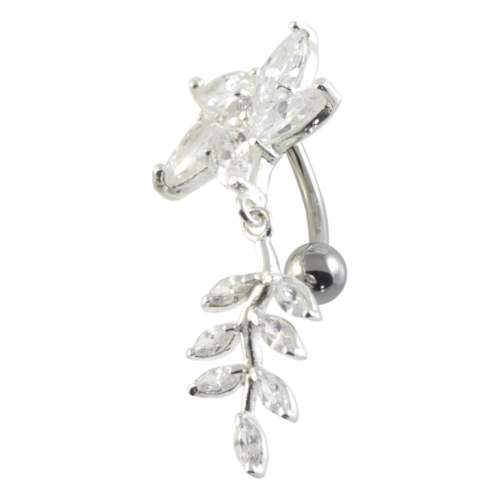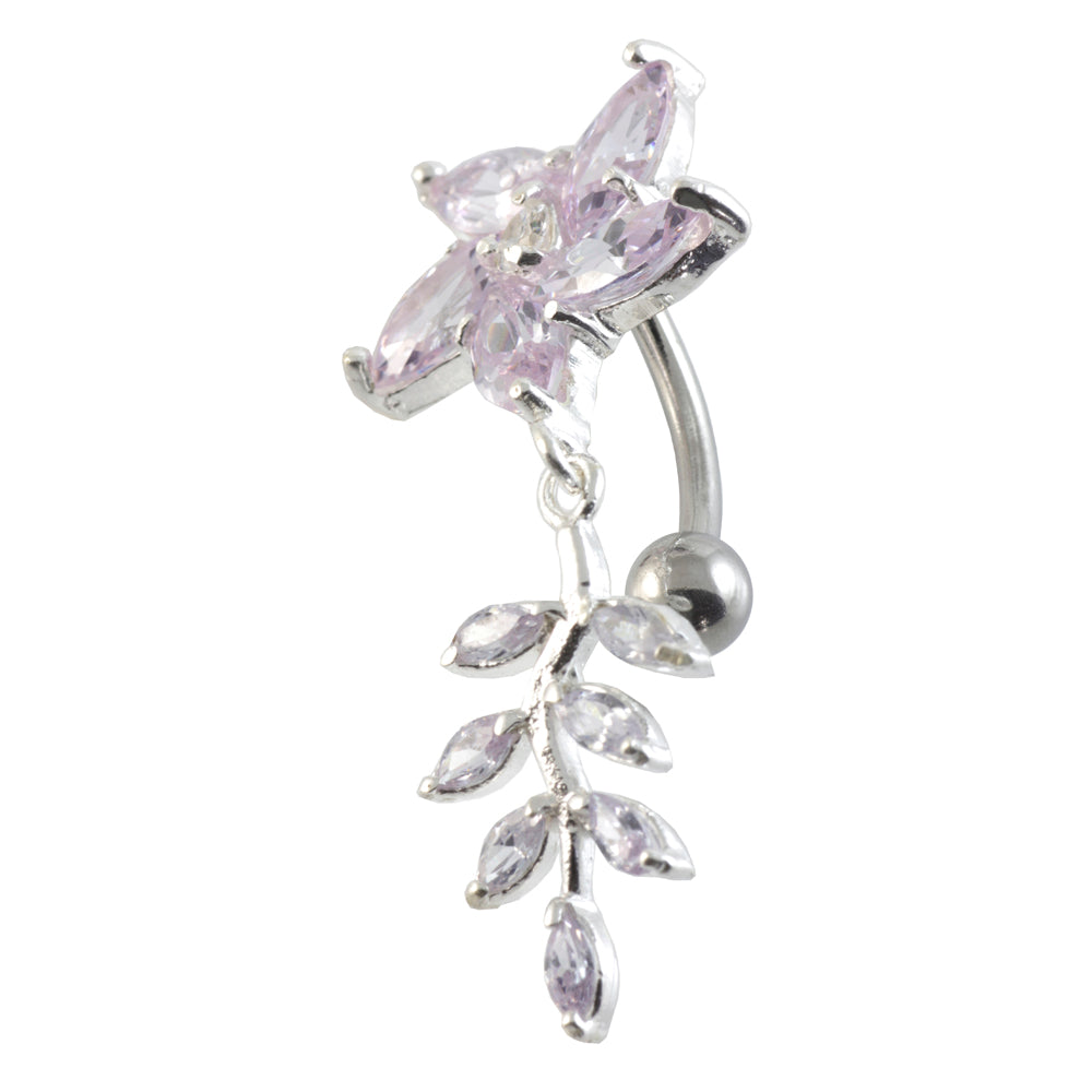 Silver Set Gems 316L Belly Bar Gauge: 1.6mm Sizes: 8mm, 10mm, 12mm Gem Colours: Crystal, Aqua, Rose, Lilac