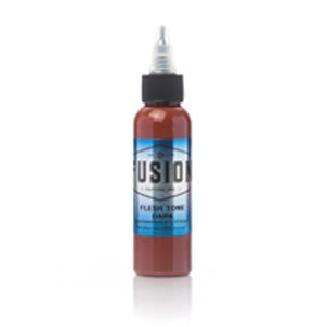 Single bottle of Fusion tattoo ink, available in 1oz or 2oz. Organic, non-toxic and vegan safe. Part of the Flesh Tone Set. In this tone the browns start overpowering the oranges for darker areas of flesh tattoos.