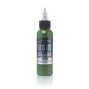 1oz bottle of Fusion tattoo ink. Organic, non-toxic and vegan safe. Part of Juan Salgado's Signature Set. A pastel olive green great for creating a natural look on leaves.