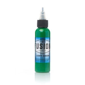 Single bottle of Fusion tattoo ink, available in 1oz or 2oz. Organic, non-toxic and vegan safe. A rich vibrant bright green tone. Break it down with Atomic Yellow for a rich bright lime green tone.