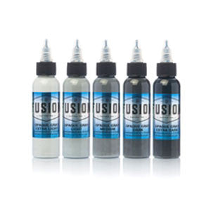 Opaque Grey Set includes: Light, Medium, Dark, Extra Light,Extra Dark 5 x 1oz bottles Fusion tattoo ink is organic, non-toxic and vegan safe.