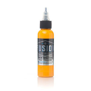 1oz bottle of Fusion tattoo ink. Organic, non-toxic and vegan safe. Part of Rick Walter's Signature Set. An orange-yellow tone that mixes great and stays.
