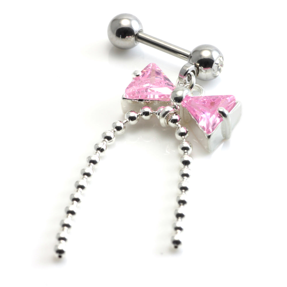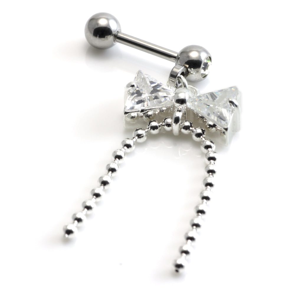 For Tragus & Helix piercings, Rhodium Plated Gauge: 1.2mm Bar Size: 6mm, 7mm, 8mm Gem Colour: Crystal, Aqua, Lt Rose