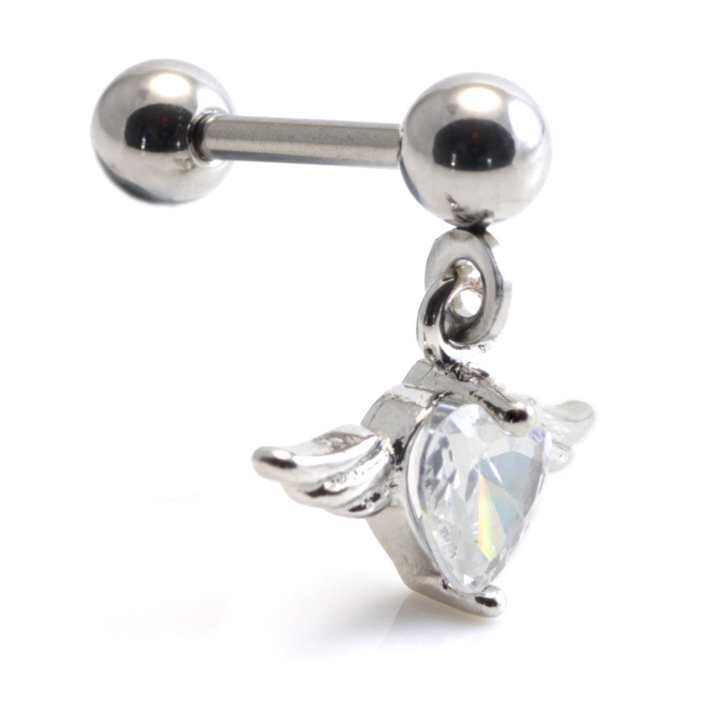 For Tragus & Helix piercings, Rhodium Plated Gauge: 1.2mm Bar Size: 6mm, 7mm, 8mm Gem Colour: Crystal
